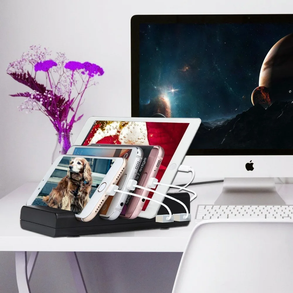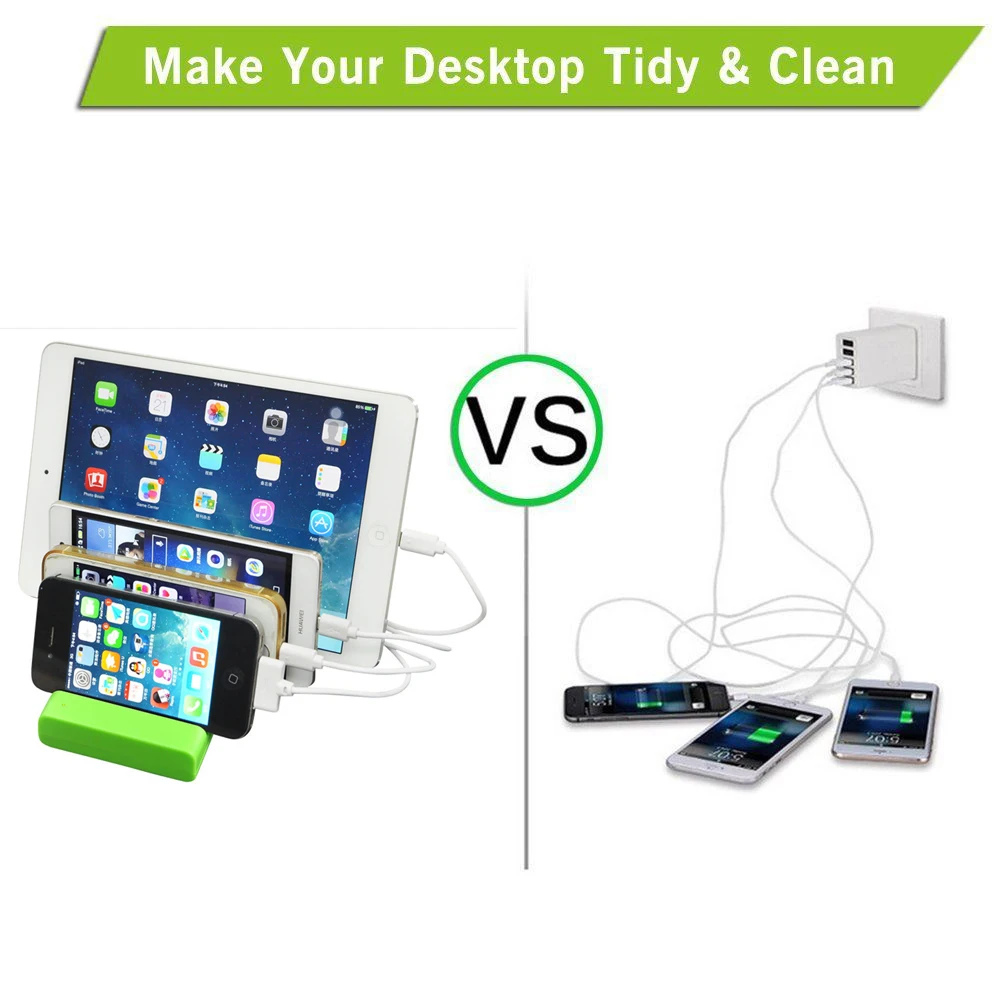 Comprar Estación de carga de 4 puertos, soporte de base de 1A/2.4A, USB Universal, cargador de teléfono inteligente para iPhone 13, 12, 11, X, 8, 7, 6, 6S, Samsung y LG
