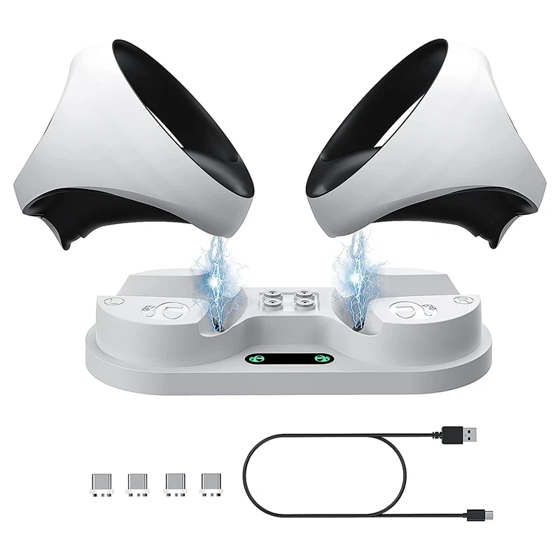 Comprar Estación de carga para controlador PS VR2, soporte de base de carga para controlador VR con 4 Cierres magnéticos tipo C y Cable tipo C