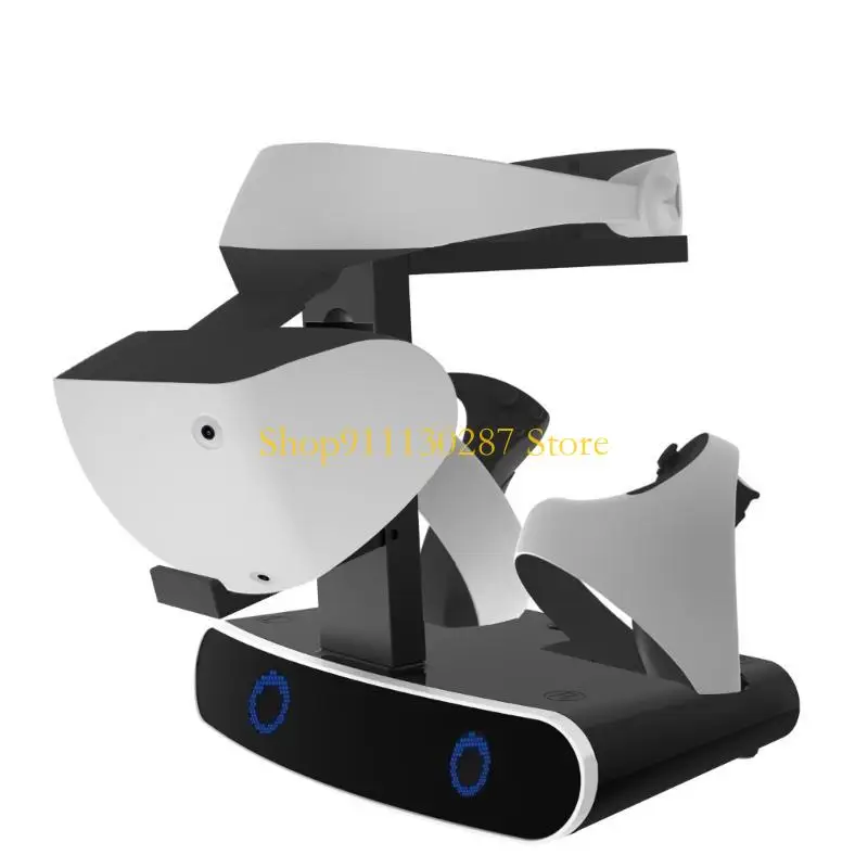 No solo estación de carga sino también soporte VR para almacenamiento de auriculares y controladores.