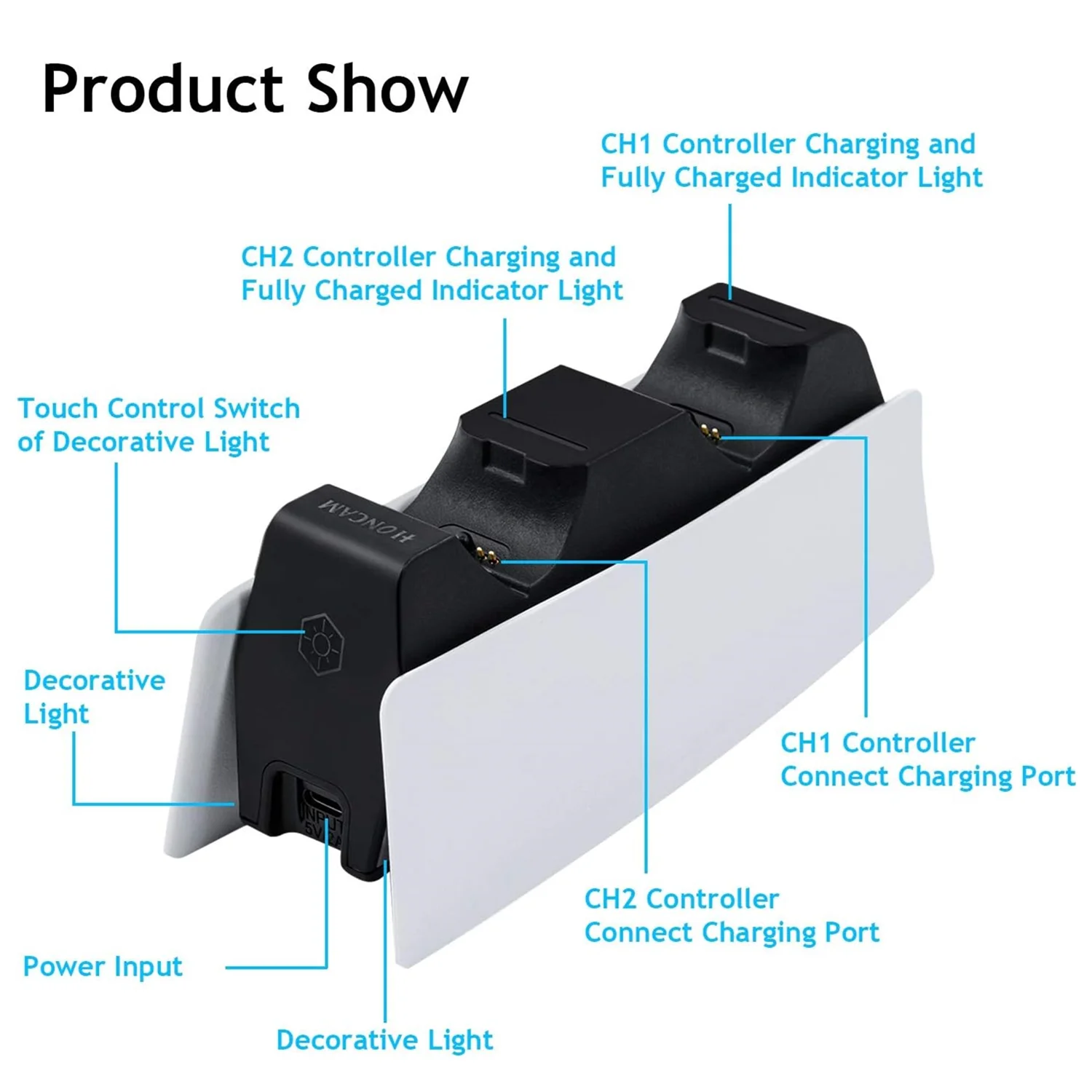 Estación de carga del controlador Ps5 con base de carga rápida dual para el controlador inalámbrico PS5 DualSense con indicadores de carga LED