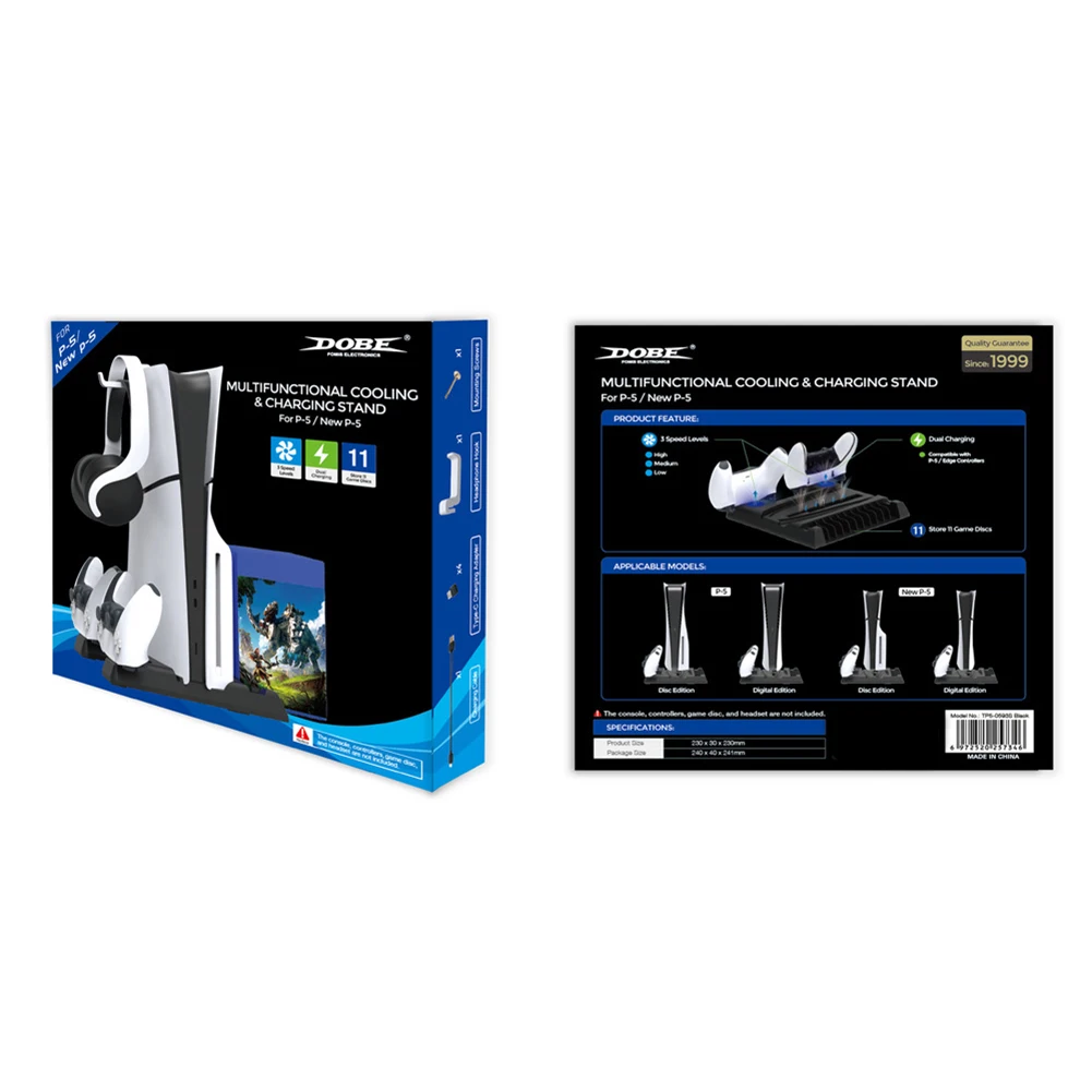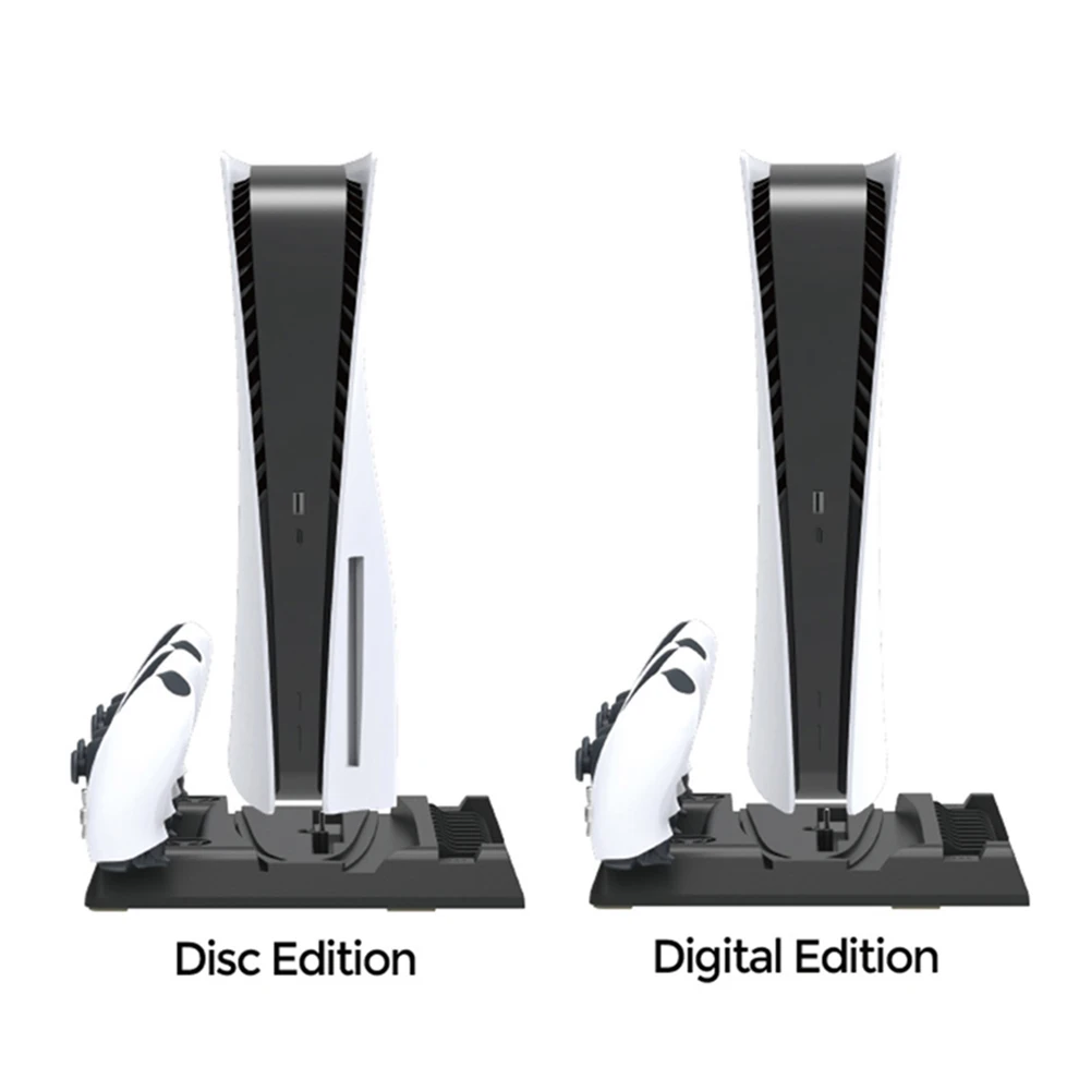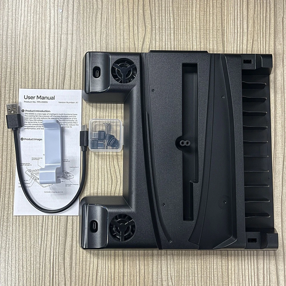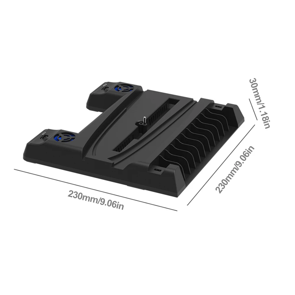 Característica:1. Base multifuncional inteligente:Simplifique su configuración de juego con nuestra estación de enfriamiento de vanguardia, diseñada no solo para mantener la PS5/para PS5 Slim genial, sino también para cargar sus controladores de manera eficiente. Reduce significativamente la temperatura de su consola, aumentando el rendimiento y reduciendo el uso de electricidad. Compatible con PS5 Slim y los modelos originales, cuenta con ventiladores duales de velocidad ajustable que mejoran el flujo de aire debajo de su consola. Con un interruptor de control de ventilador que ofrece cuatro modos: alto, medio, bajo y apagado, gestionado por un chip inteligente con función de memoria de apagado, optimiza el enfriamiento de su consola. Además, la base cuenta con 11 ranuras para almacenar tus discos de juego, lo que la convierte en una adición versátil para cualquier jugador.