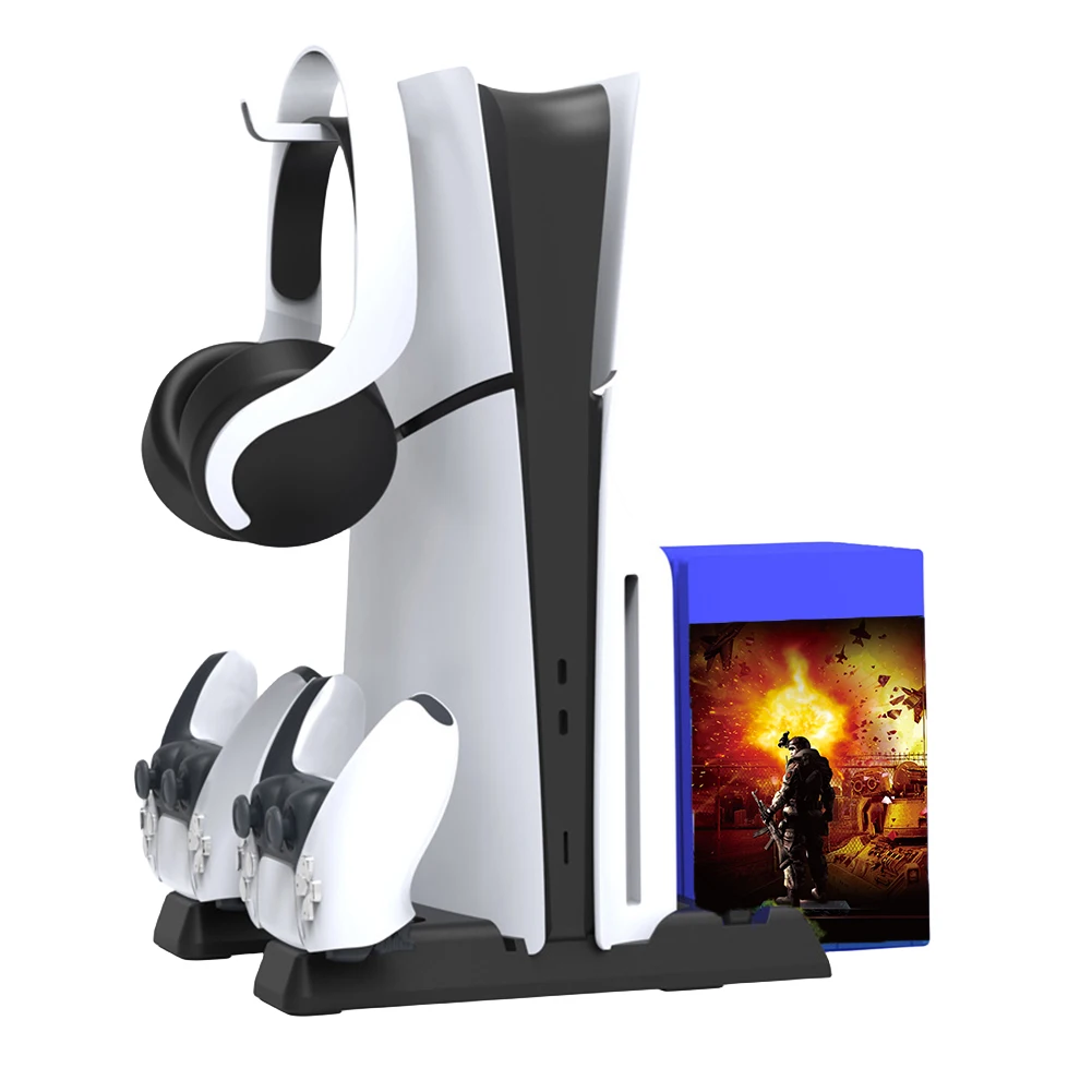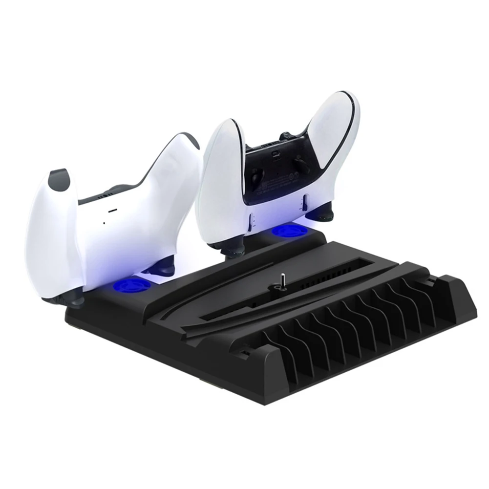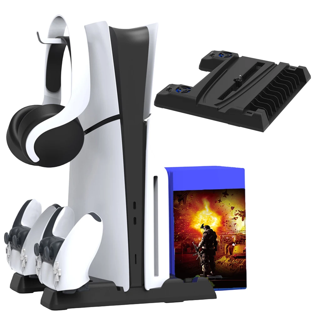Estación de enfriamiento Estación de carga de controlador dual 11 Ranuras para juegos 2 Base de carga de controlador 1 Soporte para auriculares 2 Puertos USB3.0 para PS5 Slim/PS5 Consola Digital y edición de disco
