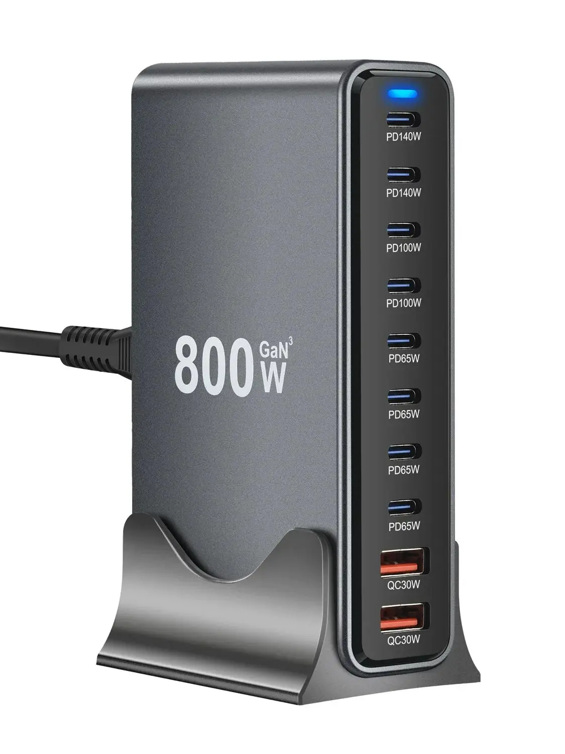 Estación de carga de escritorio GaN de 800 W, 10 puertos, 2 USB-A y 8 tipos C PD, 140 W, concentrador de carga rápida para teléfonos móviles, iPhone, MacBook, etc.