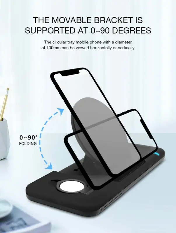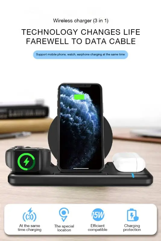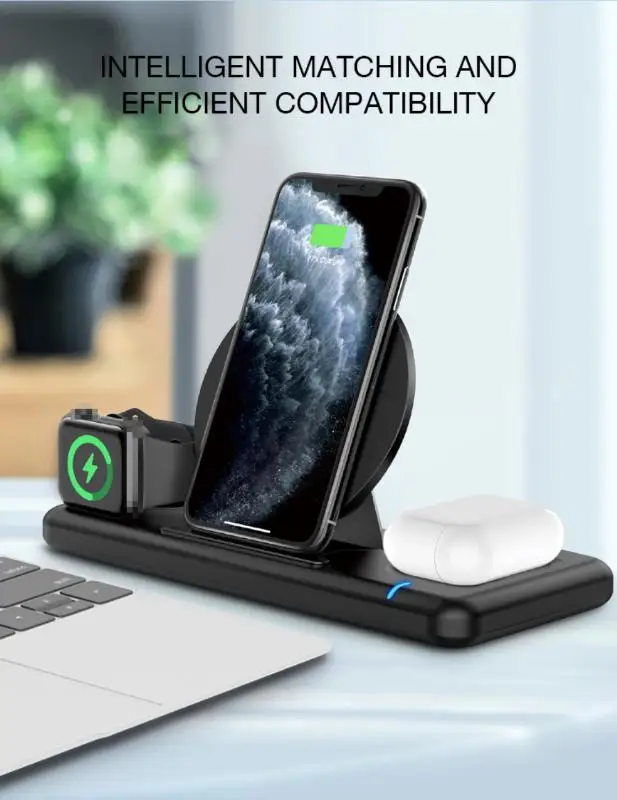 La estación de carga inalámbrica 3 en 1 es adecuada para IWatch AirPods Qi Soporte de carga inalámbrica rápida adecuado para IPhone