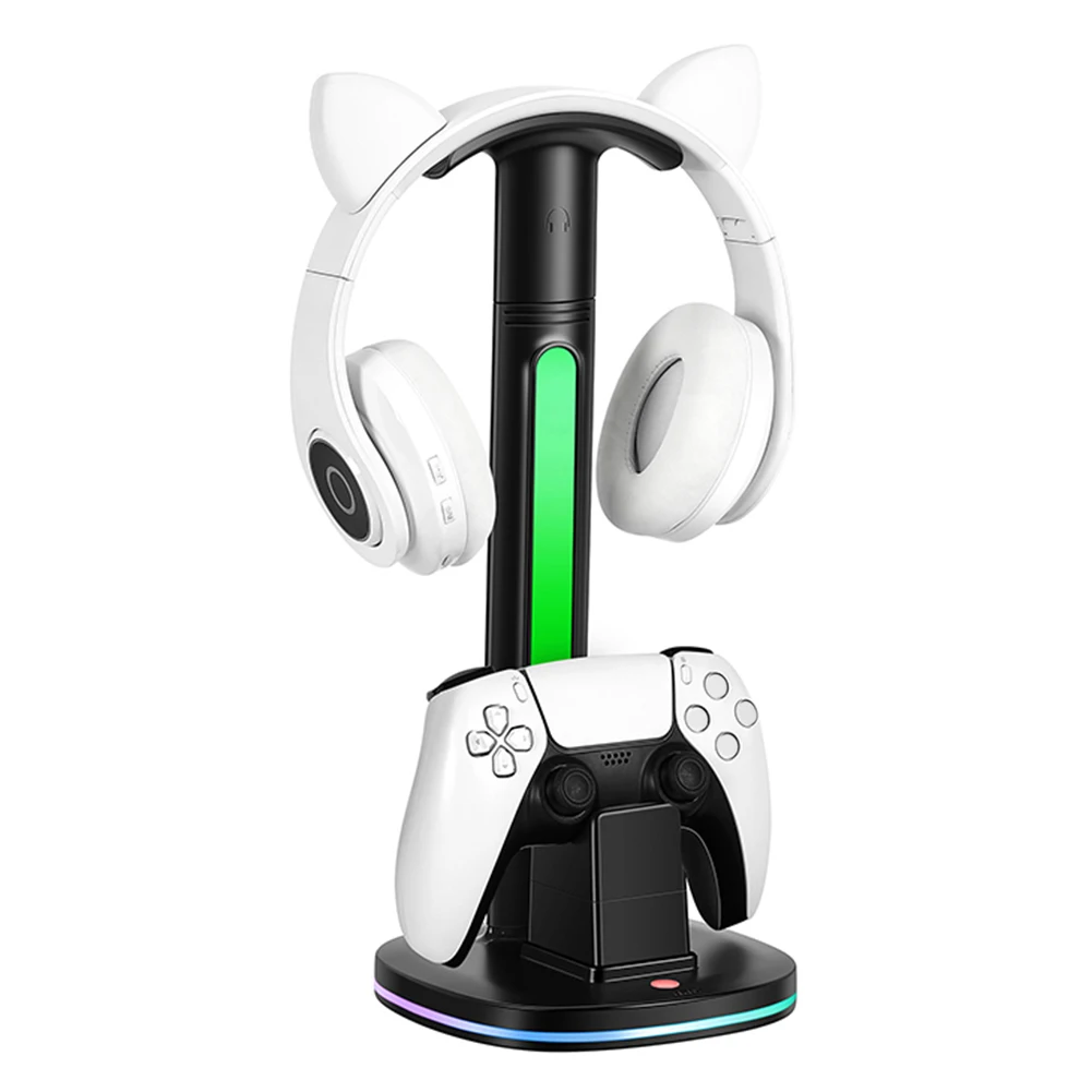 Estación de carga del controlador con luz LED Manija del juego Base del cargador Soporte de pantalla para auriculares Estación de acoplamiento Cable de carga tipo C
