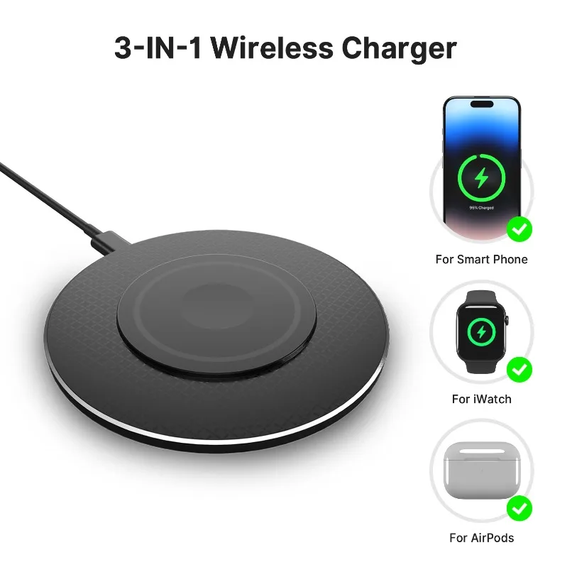 Compatibilidad universal:para iPhone 17 16 15 14 13 12 Plus /Pro/ Pro max (Nota: la función de succión magnética no es compatible con iPhone 11 a 8 series), también es compatible con Apple Watch Ultra 10 9 7 6 5 3 2 y AirPods (Nota : solo admite AirPods 2/3/4 con dispositivos magnéticos)