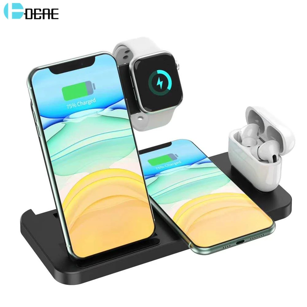 Obtendrá: Comprar Estación de carga rápida 4 en 1 para iPhone 14, 13, 12, 11, XS, XR, X, 8, Apple Watch 7, 6, 5, AirPods Pro, 15W