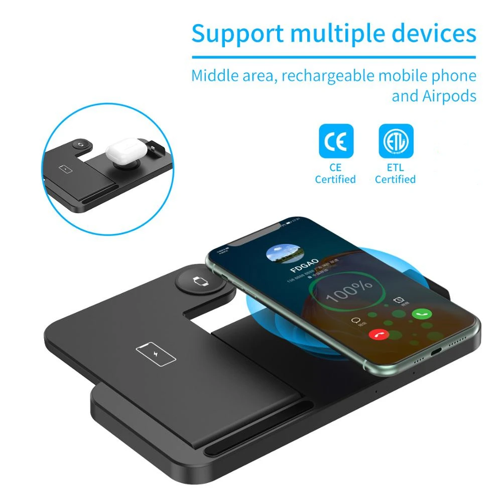 Descripción del productoActualización de la nueva versión de la 4 en 1 cargador inalámbrico1 multi-dispositivo de carga: cargador inalámbrico diseño te permite de forma inalámbrica a los relojes inteligentes y los teléfonos móviles y otros en el mismo tiempo