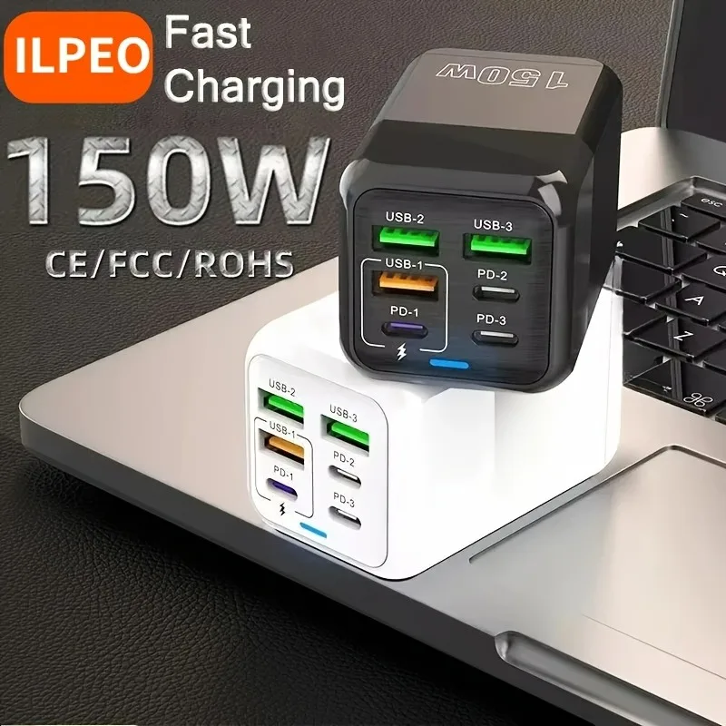 Estación de carga rápida Pd QC Usb C de 150W y 6 puertos para teléfonos móviles, adaptador de cargador de pared, carga súper rápida para Iphone, Ipad, Xiaomi, etc.