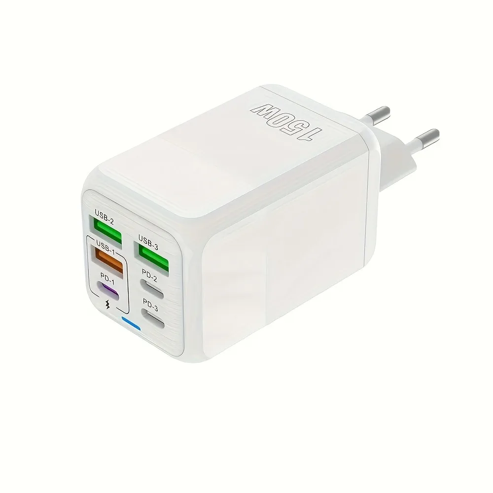 Cargador rápido USB C de 150 W QC3.0 PD 4 USB + 2 PD Adaptador de pared tipo C de carga rápida, cargador de pared, conveniente carga multipuerto para automóvil compatible con Iphone 15 para Samsung, Huawei, Xiaomi, Ipad, Etc.