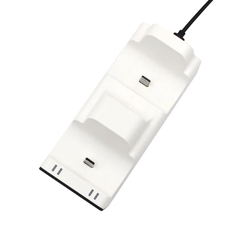 · Cargador de muelle diseñado para el controlador inalámbrico PS5 · Se pueden cargar dos controladores al mismo tiempo. El cable de conexión también se puede cargar mientras está en uso · Entrada 5V2A · Salida 5V2 * 1A · Al cargar un controlador, se puede cargar completamente en dos horas · Carga dos controladores al mismo tiempo y se carga completamente en cuatro horas. · El indicador LED único de dos colores muestra el estado de carga, la luz roja se muestra durante la carga, la luz azul se muestra cuando está llena