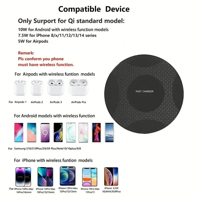 【Amplia compatibilidad】Soporta salida de 10W/7,5 W/5W. Nuestros cargadores inalámbricos serán compatibles con todos los teléfonos que admiten carga inalámbrica. Entonces, si sus teléfonos admiten carga inalámbrica, ¡simplemente cómprelo!