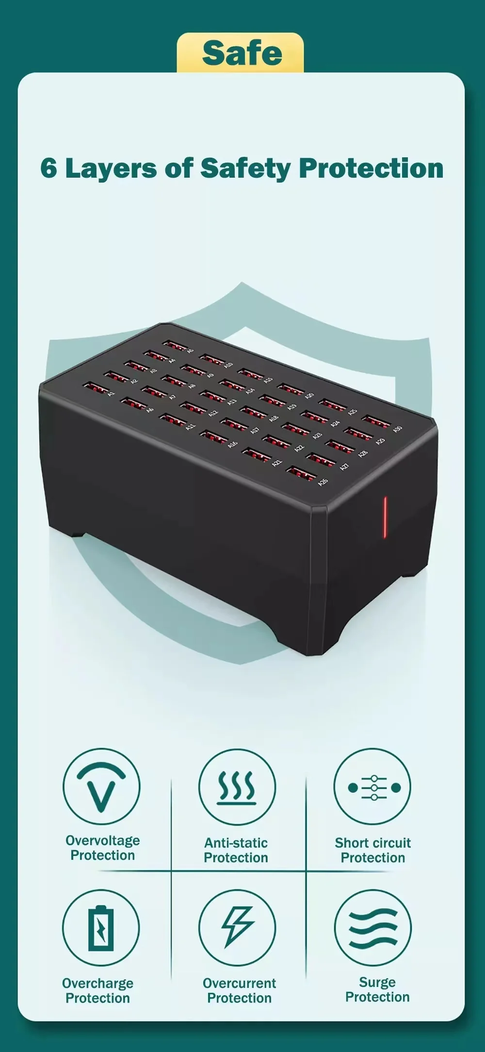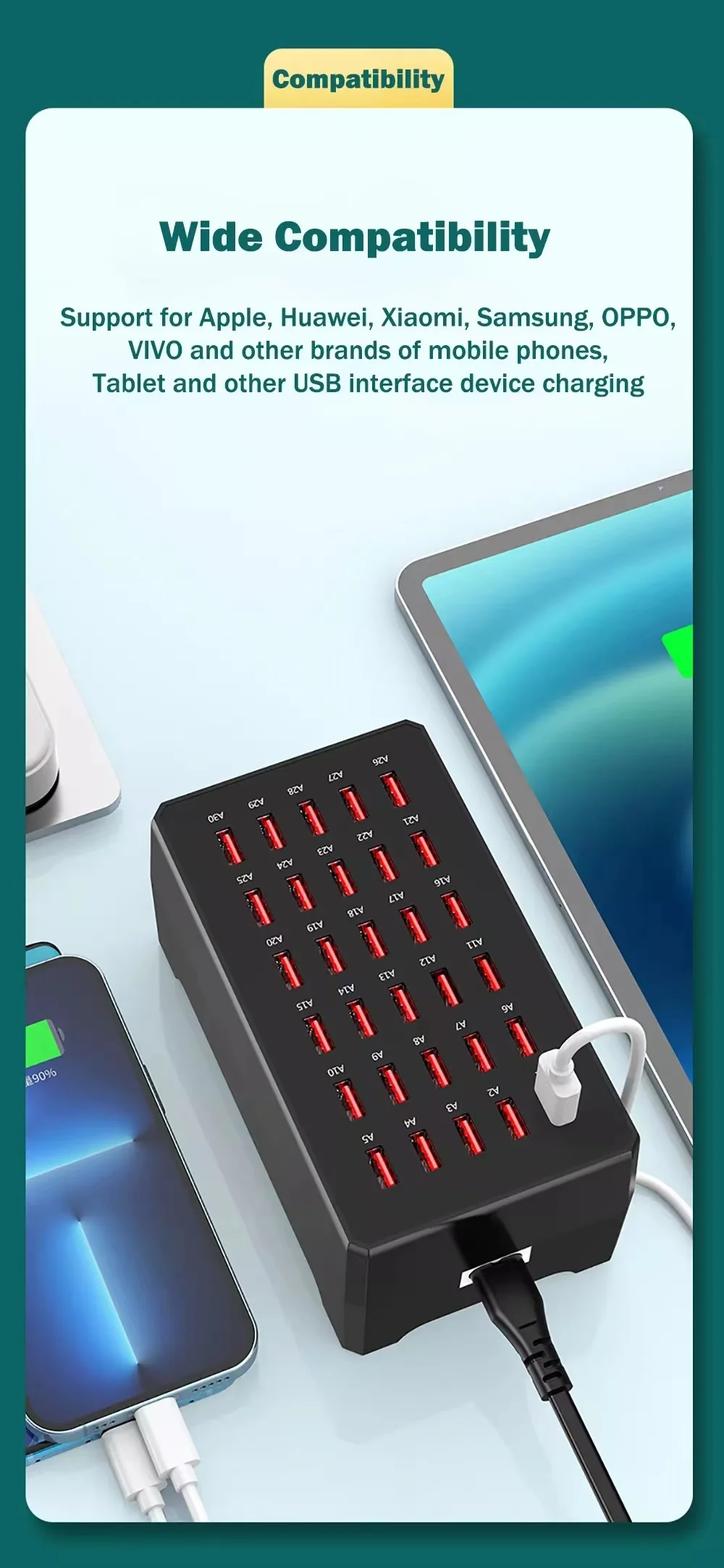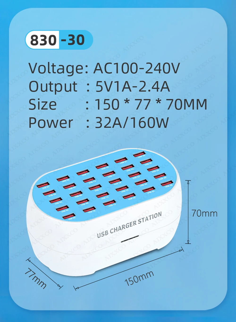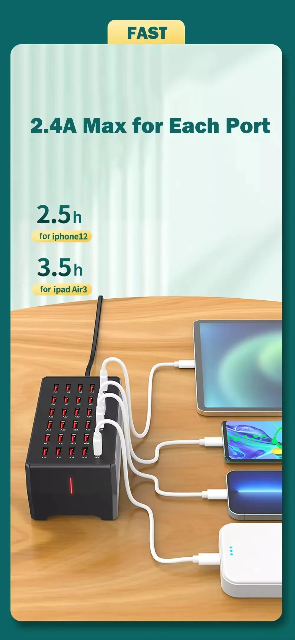 Comprar Estación de carga rápida para teléfono móvil, Cargador USB de 10, 30 puertos, 150W, Universal, de pared