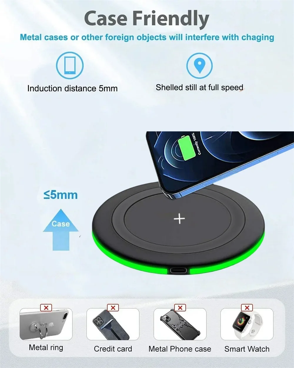 Comprar Estación de carga rápida para teléfono ultrafina de 15W, soporte de almohadilla de cargador magnético inalámbrico para iPhone 16 15 14 13 12 11 Pro Max Samsung