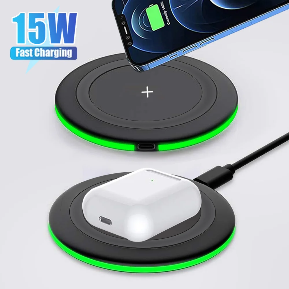 Comprar Estación de carga rápida para teléfono ultrafina de 15W, soporte de almohadilla de cargador magnético inalámbrico para iPhone 16 15 14 13 12 11 Pro Max Samsung