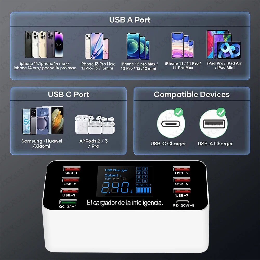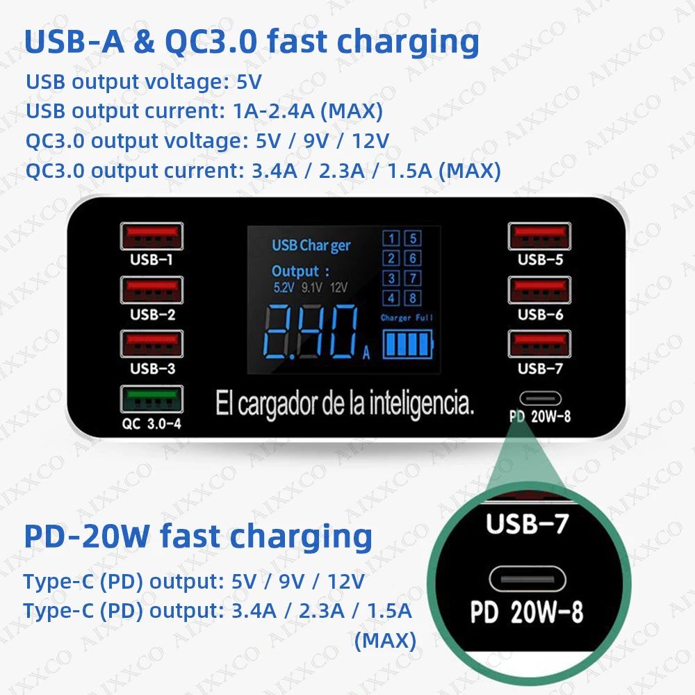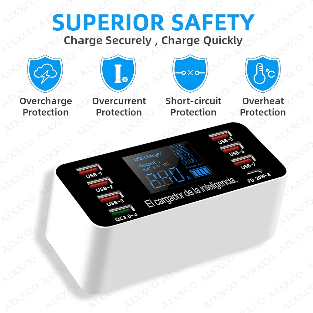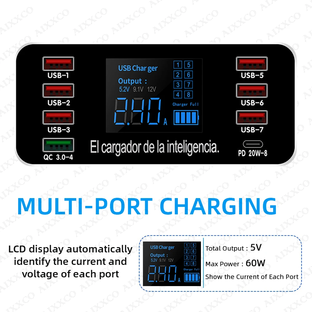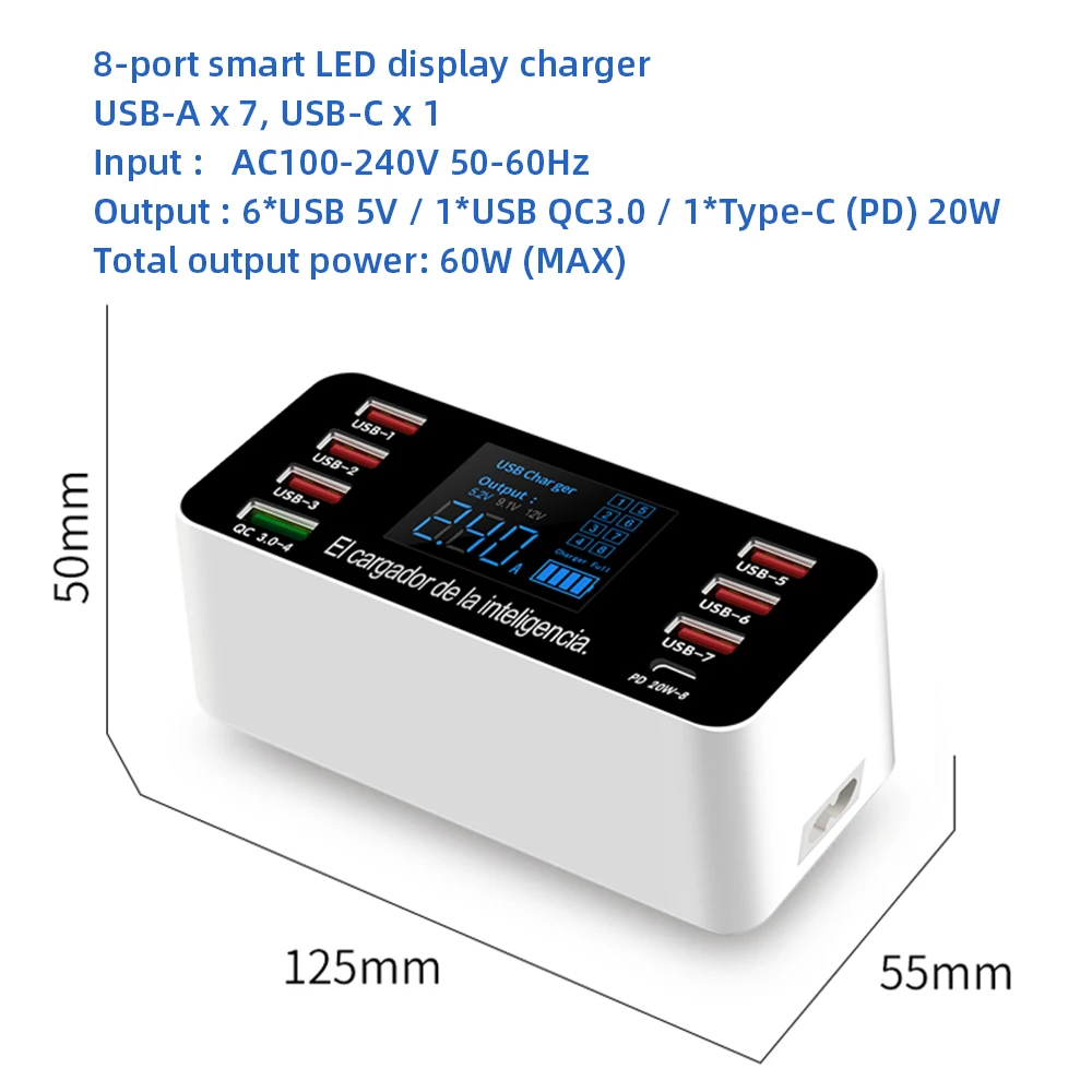Cargador rápido USB 6USB + 18W QC3.0 + 20W PD3.0