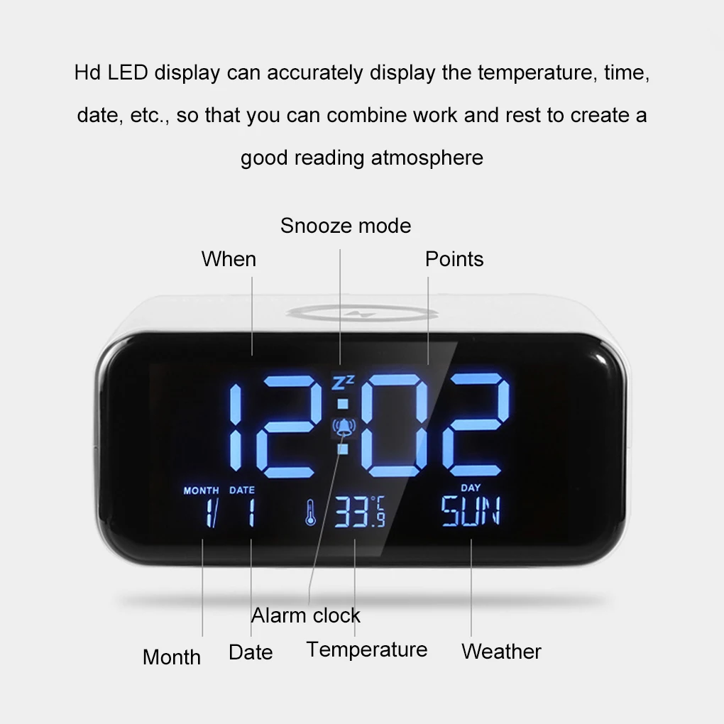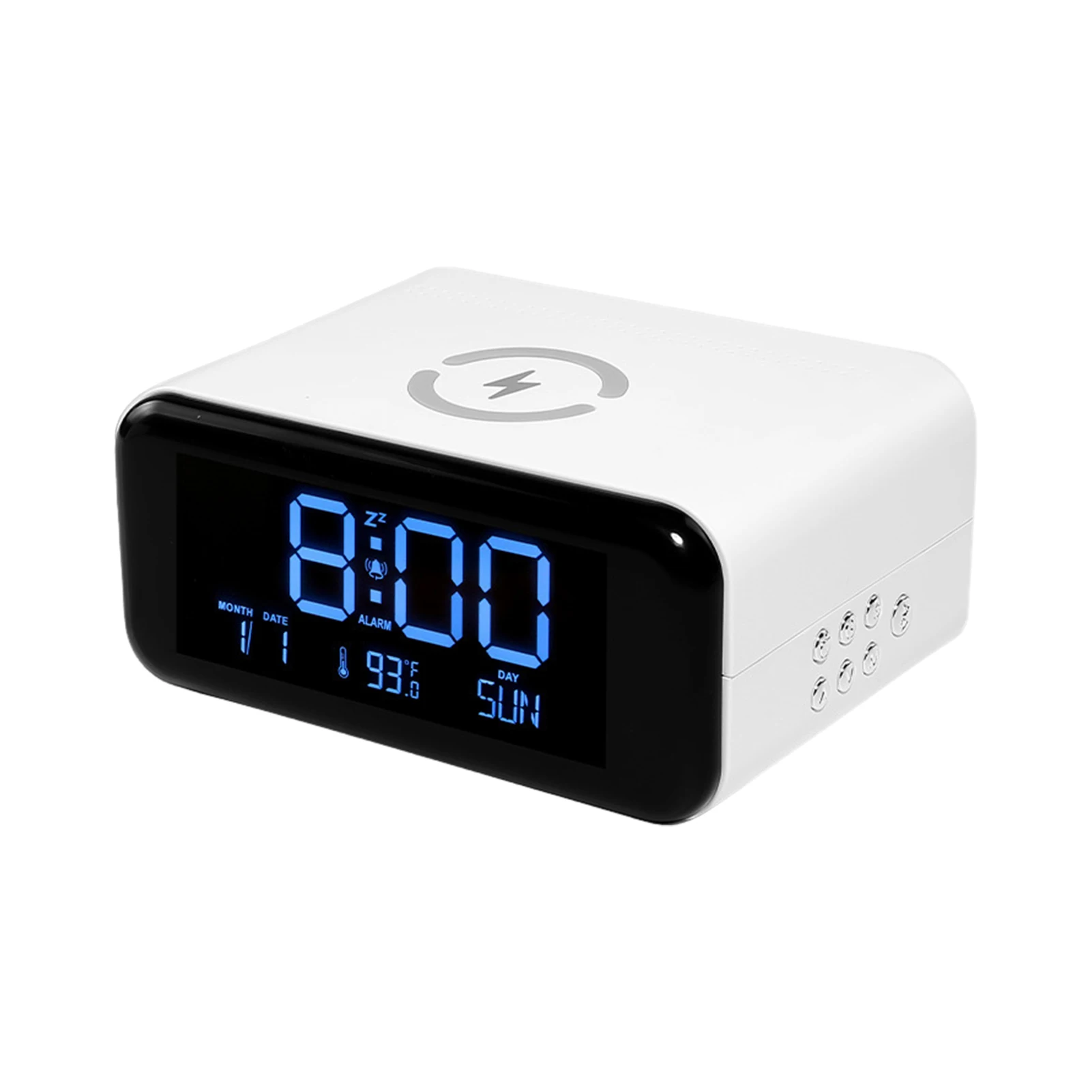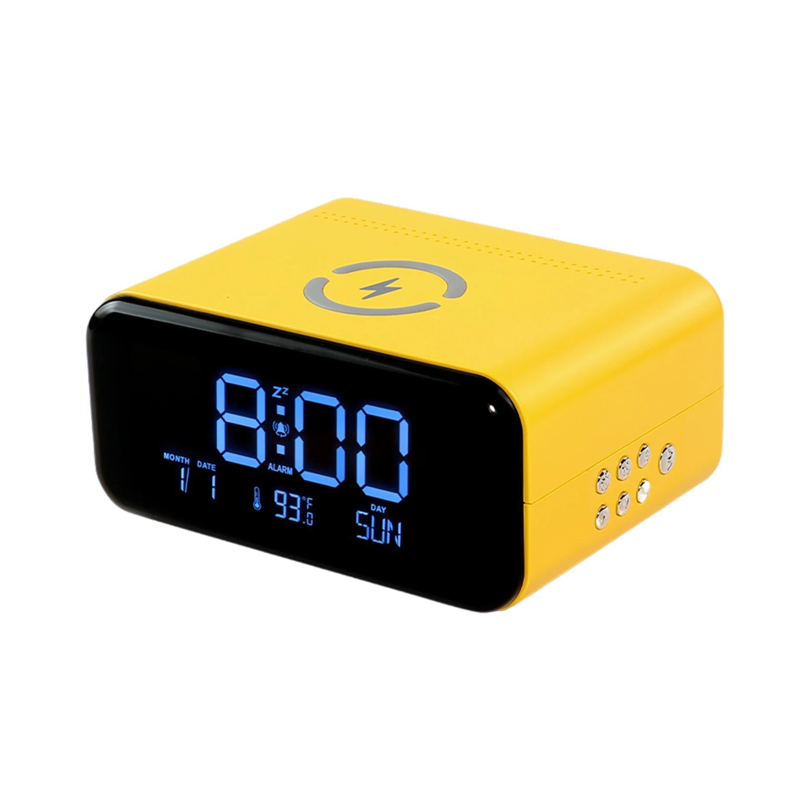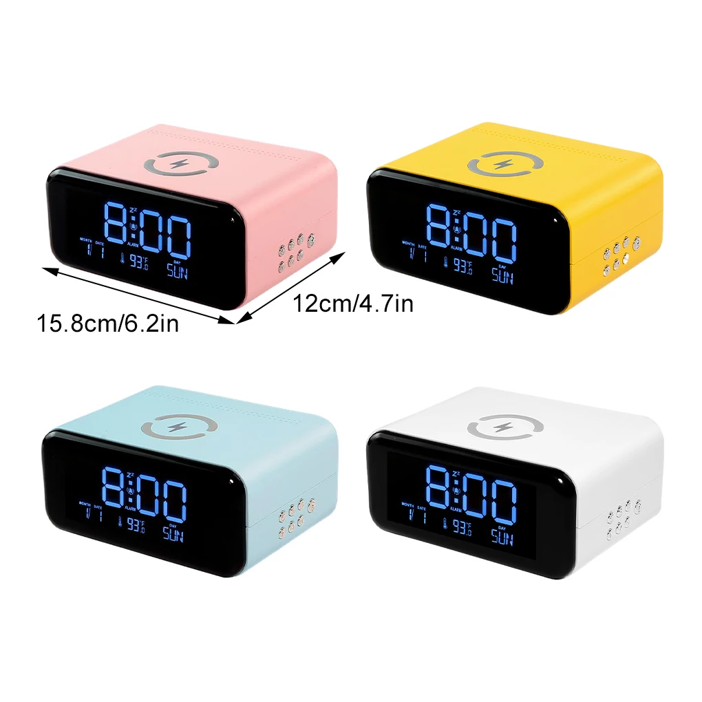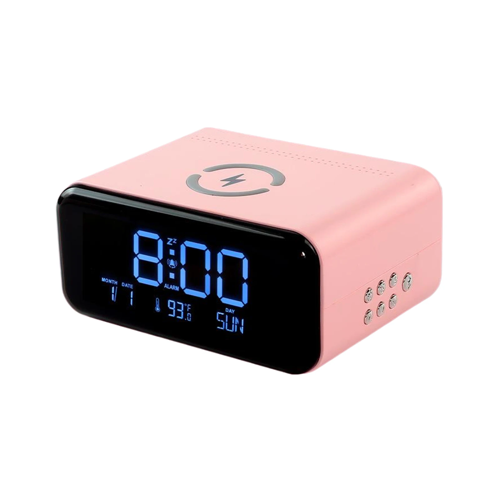 Cargador inalámbrico Altavoz Bluetooth Despertador: Manténgase organizado con este dispositivo todo en uno que presenta hora, semana, calendario y temperatura en la misma pantalla
