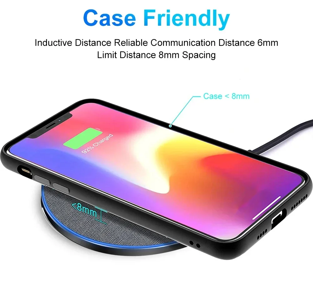 【Fácil carga inalámbrica y compatible con estuches】El cargador inalámbrico rápido le permite cargar su dispositivo a una velocidad de carga más alta, hasta 1,8 veces más rápida que el cargador inalámbrico estándar. No busque la funda de su teléfono.Carga inductiva directamente a través de estuches protectores de hasta 6 mm/0,23 pulgadas de grosor (sin incluir estuches con accesorios magnéticos o metálicos).