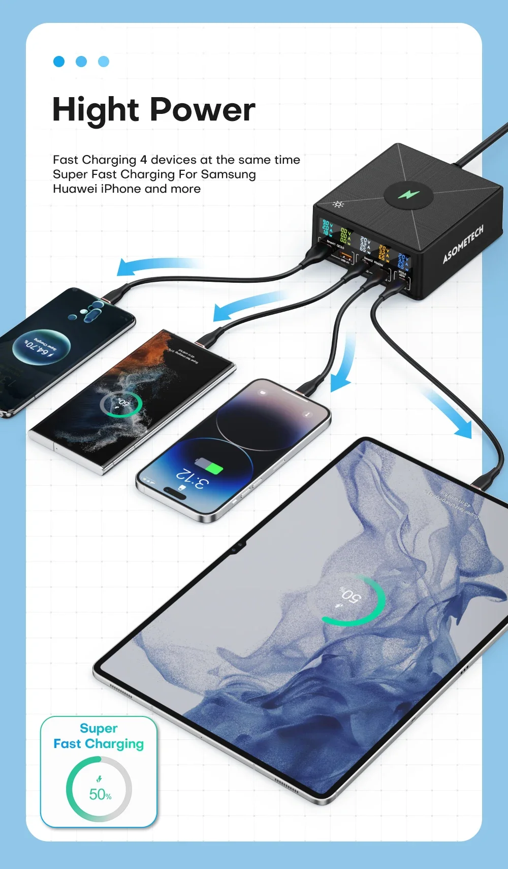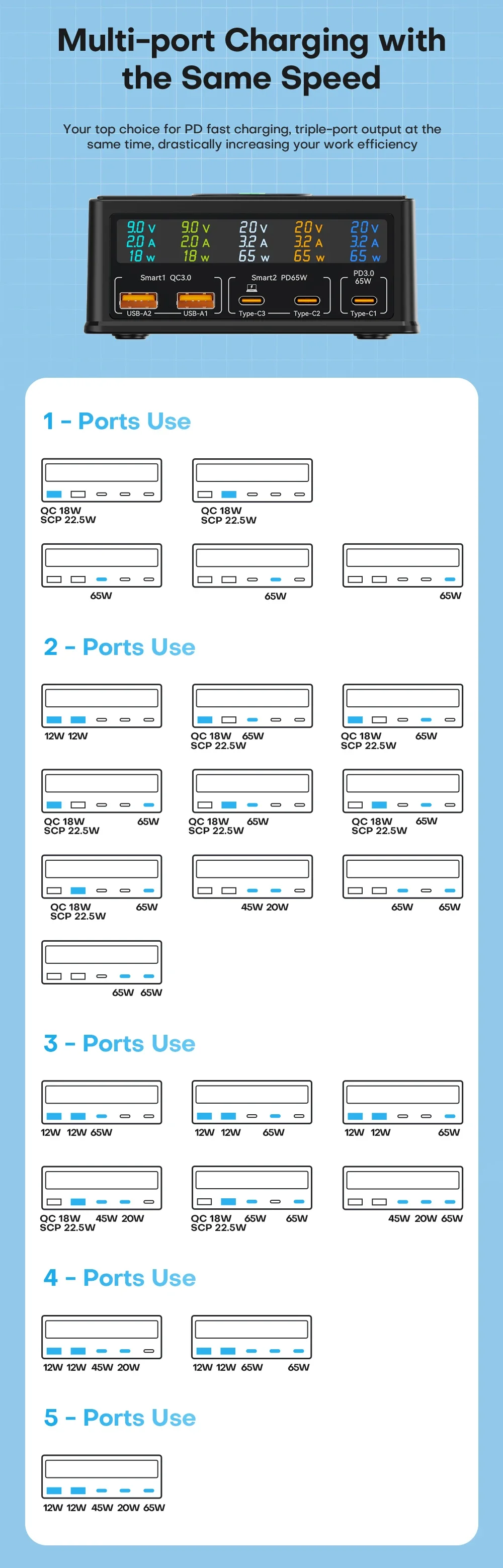 Su mejor opción para la carga rápida PD, salida de triple puerto al mismo tiempo, lo que aumenta drásticamente la eficiencia de su trabajo