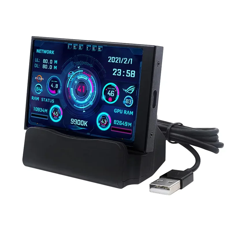 Base de escritorio USB-C para pantalla secundaria IPS tipo C de 3,5 pulgadas soporte de carga USB tipo C monitores de pantalla inteligente