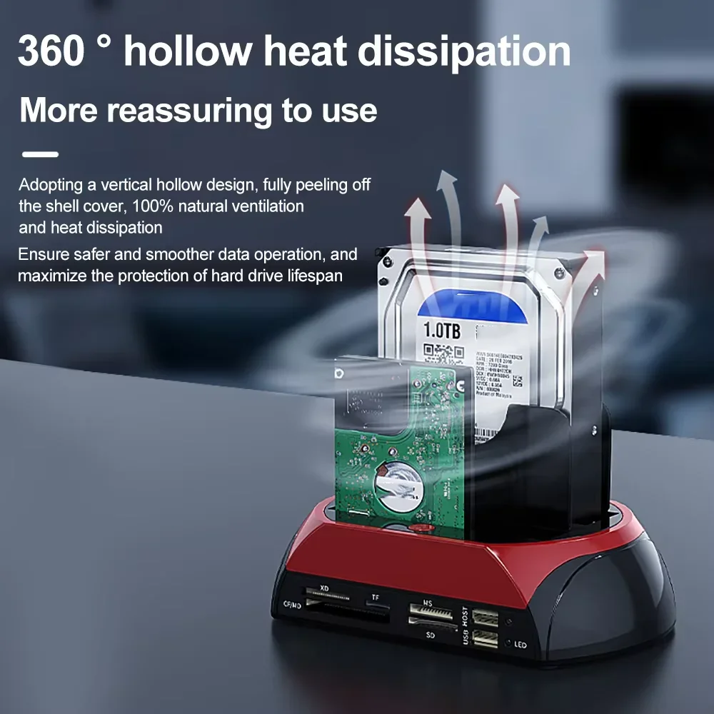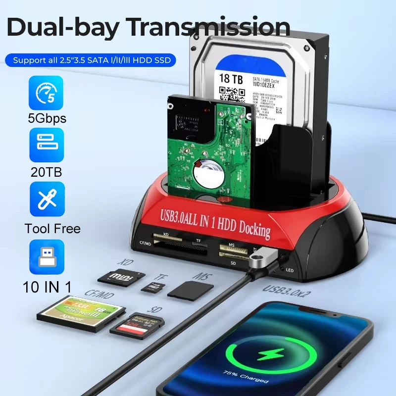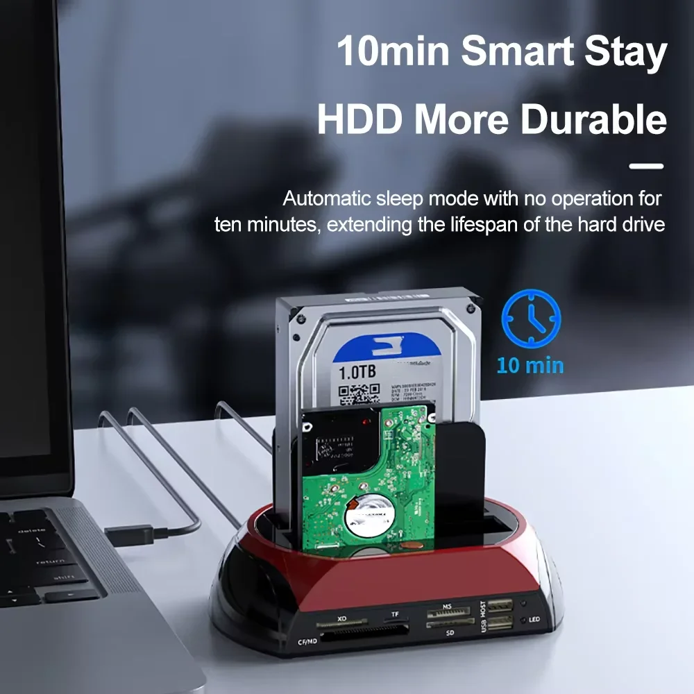 Comprar Estación de disco duro de doble bahía 10 en 1, estación de acoplamiento SATA IDE HDD con adaptador de corriente de 12V para tarjeta HDD/SSD TF de 2,5/3,5 pulgadas