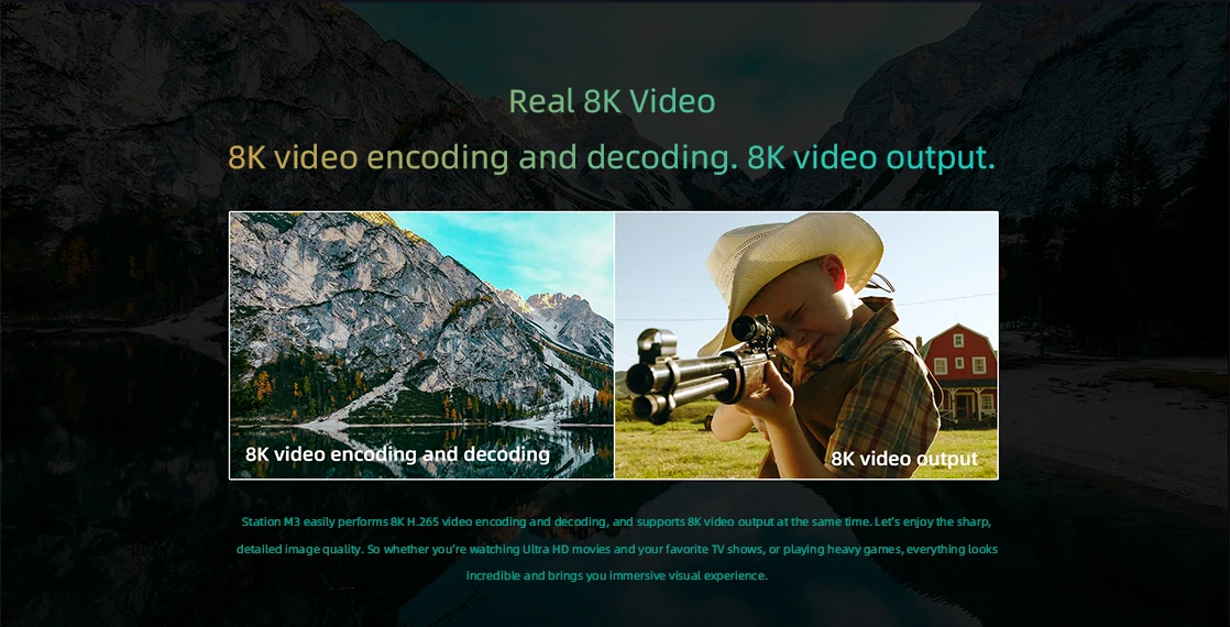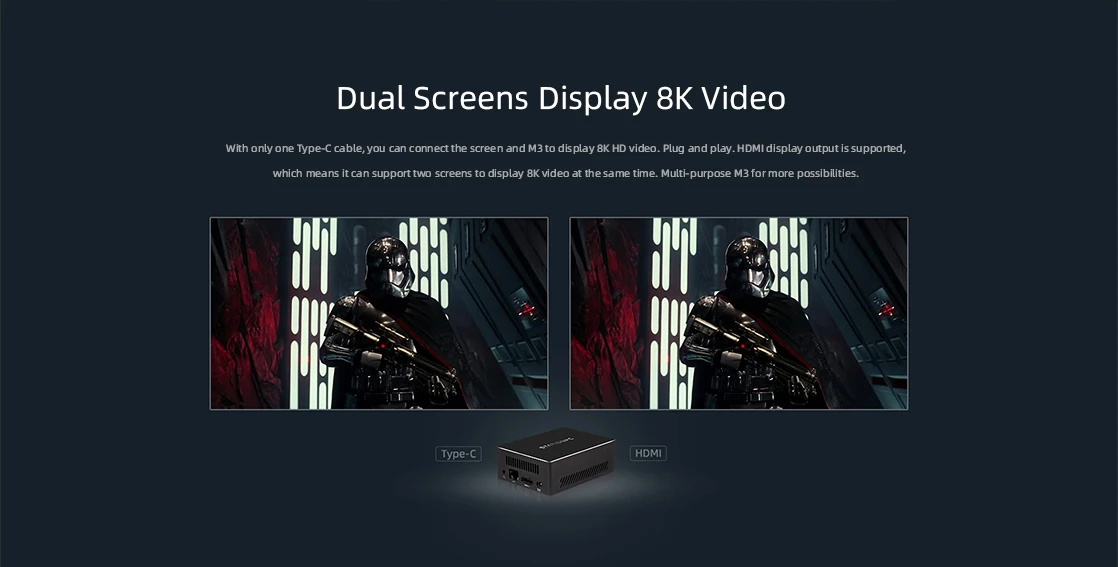 Estación M3 mini pc 1080P/4k/8K pantalla HD, 4GB/8GB/16GB LPDDR4, procesador de 8 núcleos, múltiples interfaces