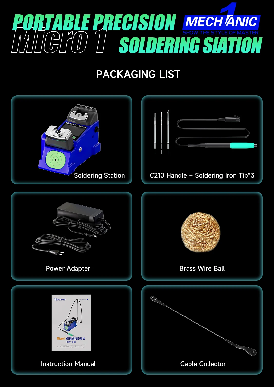 Estación de soldadura de precisión de soldador mecánico Micro 1 210 con 3 ayuda a controlar la temperatura Estación de Reparación de soldadura
