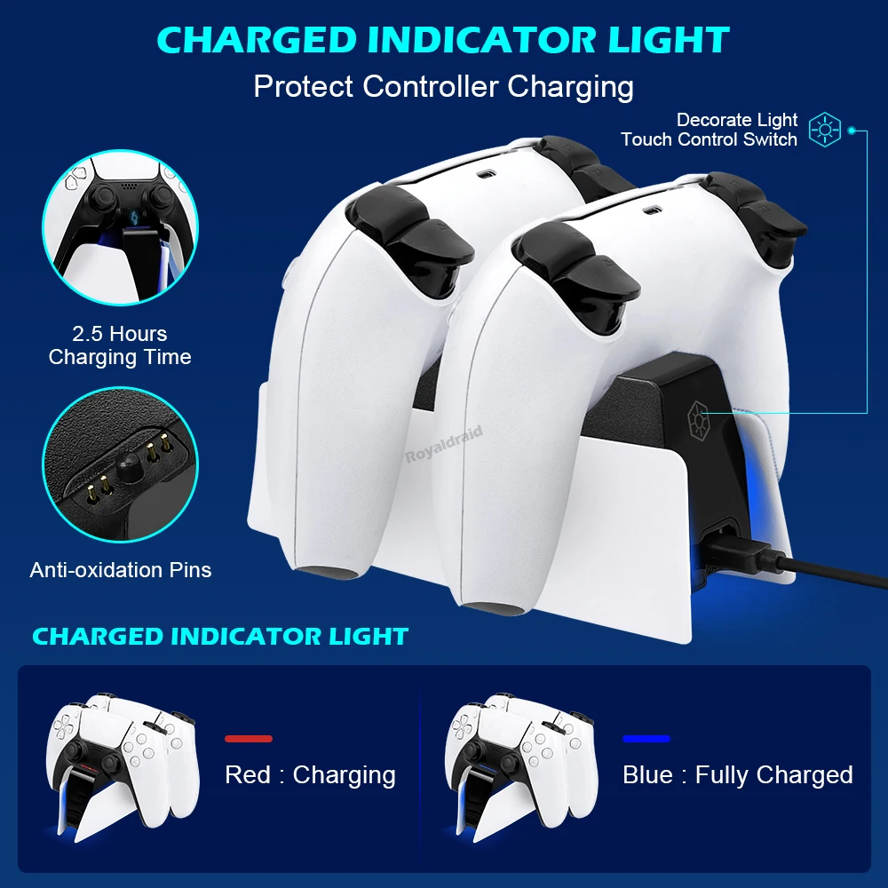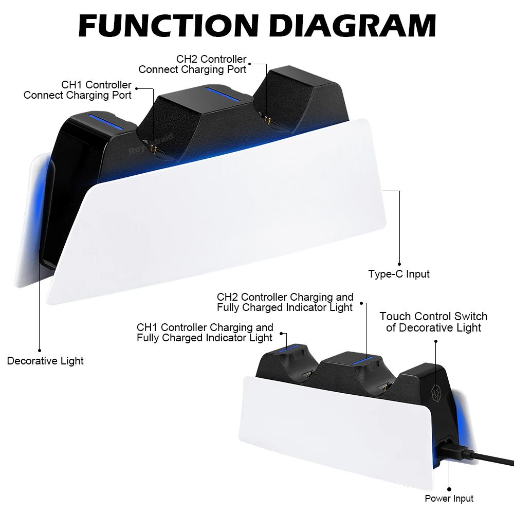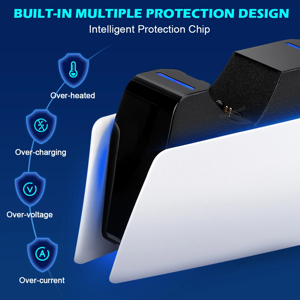 Para la estación de soporte de carga del controlador PS5 con base de cargador rápido dual para el controlador inalámbrico PS5 DualSense con indicador de carga LED-Función de triple protección. Múltiples circuitos integrados de sobrecorriente, sobretensión y subtensión para proteger su controlador PS5. Más seguro y fiable.Característica:Compatible con PS5 Slim y PS5 Fat Controllers ambos.-Compatible con una variedad de equipos de suministro de energía en el mercado, respetuoso con el medio ambiente y conveniente. -Reconocimiento inteligente equipado, no hay necesidad de preocuparse por el problema de no poder cargar después de actualizar el mango de PS5. -Protección múltiple-Límite de corriente, límite de voltaje, protección contra sobrecorriente, protección contra sobretensión, protección contra alto voltaje, protección contra cortocircuitos, etc.-Utilice el método de contacto de ranura, que es simple y cómodo de operar, resuelve el problema de la difícil alineación del mango. -Con carga e Indicación completa, asegúrese de que el mango tenga suficiente energía, para que no se preocupe por la duración de la batería.Especificación:-Tipo de enchufe: USB tipo C-Puede cargar 2 mandos para PS5 al mismo tiempo.-Equipado con un adaptador de corriente dedicado de 5V 2A, que puede proporcionar una carga rápida de alta corriente.-Manejar el tiempo de carga: 2,5 horas.Estado del indicador:Paquete incluido1 cargador de controlador dual 1 cable tipo C 1 manual de usuario (Los controladores no están incluidos).Nota:1. Debido a la diferencia de luz y pantalla, el color del artículo puede ser ligeramente diferente al de las imágenes.2. Permite una ligera desviación en los datos de medición y asegúrate de que no te importe antes de realizar el pedido.3. Si encuentra que el paquete o los productos están dañados o faltan artículos, por favor, tome un video claro para el paquete completo y el peso real recibido, y Contáctenos en primer lugar. Así que puedo resolverlo lo antes posible, gracias.