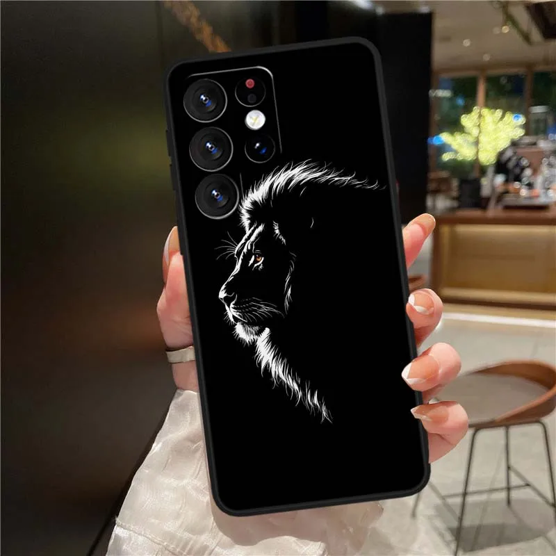 Estampado de León Animal para Samsung Galaxy Note 20 10 9 8 A24 A34 M13 M31 M32 M52 M62 Ultra Lite funda de teléfono negra