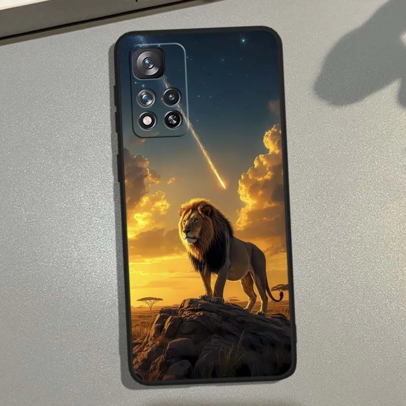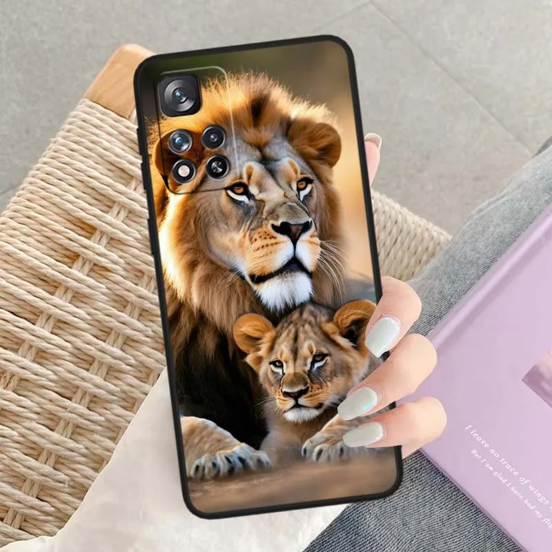 Comprar Estampado de León Animal para Xiaomi Redmi Note 14 14S 13 12 12S 12R 12T Lite Pro Plus Max 5G 4G funda de teléfono negra