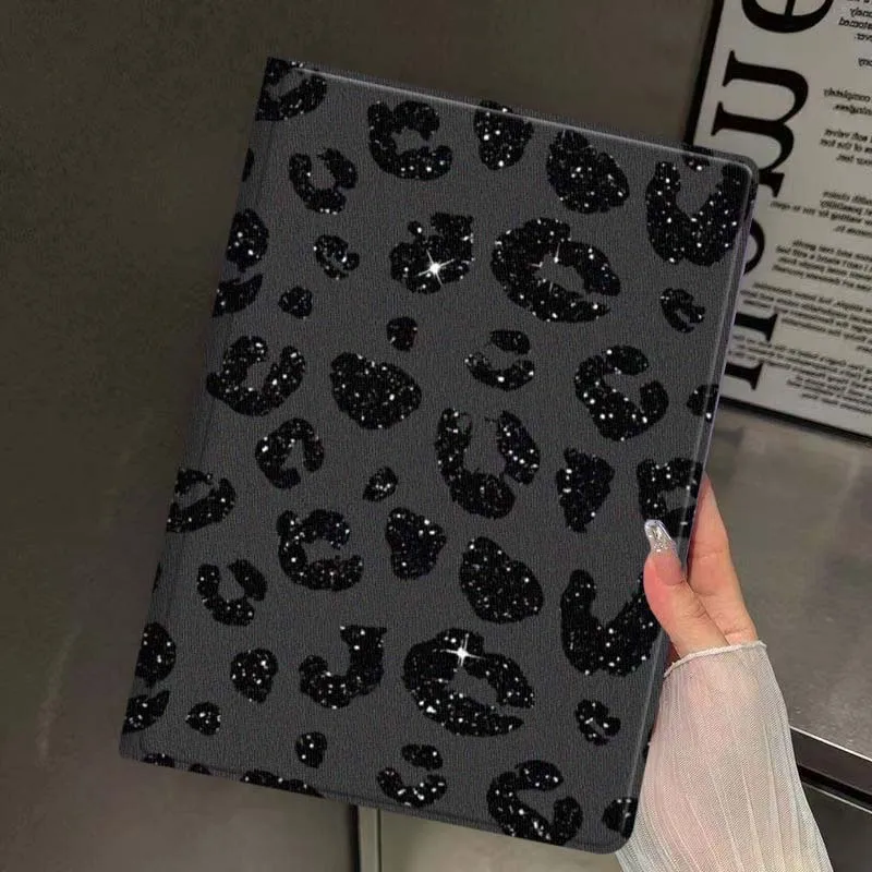 Estampado de leopardo con purpurina artística para iPad Pro Air mini 7 6 5 4 11th 10th 7th 6th 5th 13 12,9 11 10,9 10,5 10,2 pulgadas funda para tableta