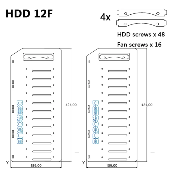 Soporte 12F: dos paneles laterales + 8 tiras de fijación del ventilador + tornillos de fijación del disco duro mecánico + tornillos del ventilador