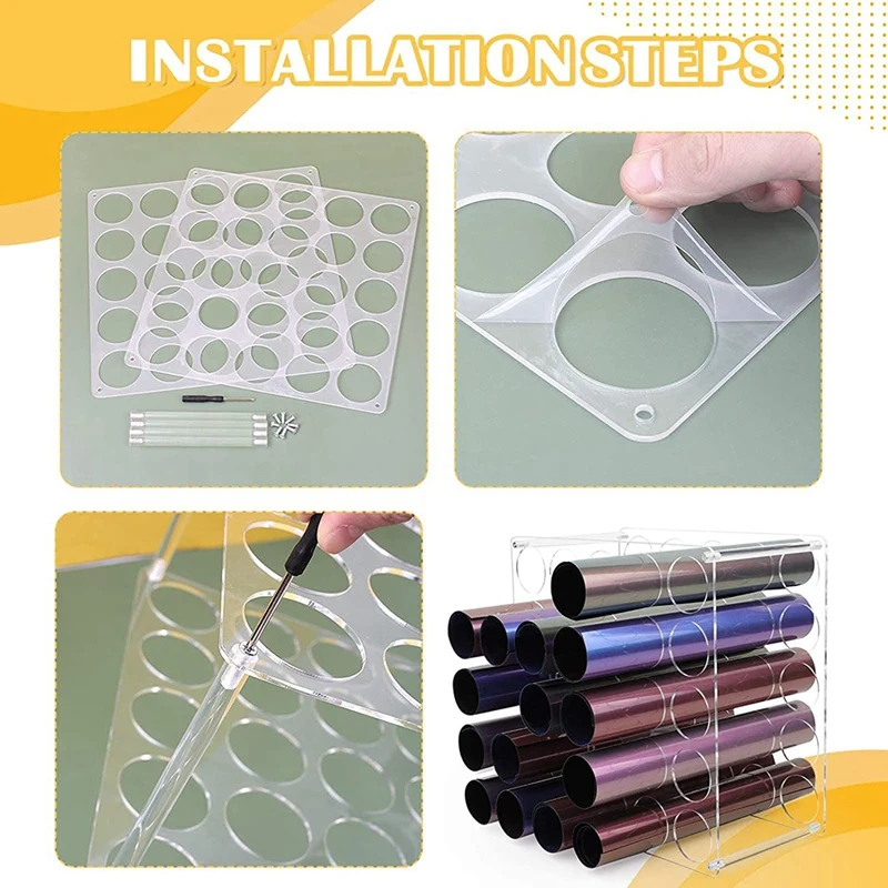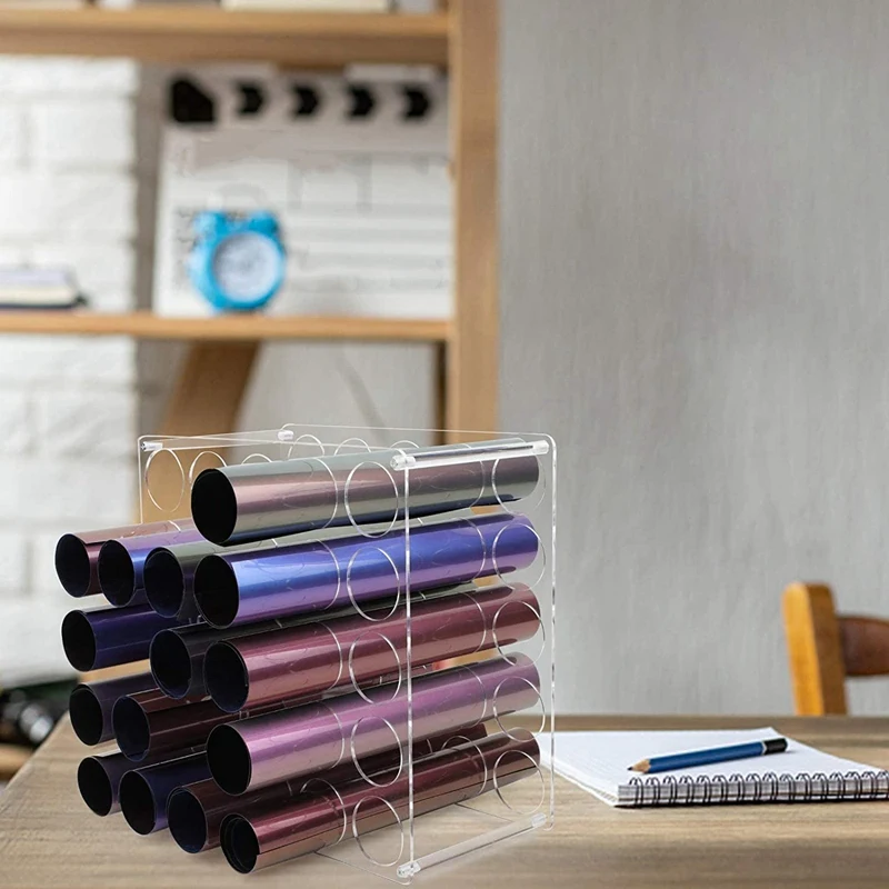 Duradero y resistente: nuestro soporte para rollos de vinilo es muy duradero, hecho de material acrílico grueso y se puede utilizar durante mucho tiempo. La práctica área de almacenamiento hace que su habitación de manualidades esté más limpia y ordenada.