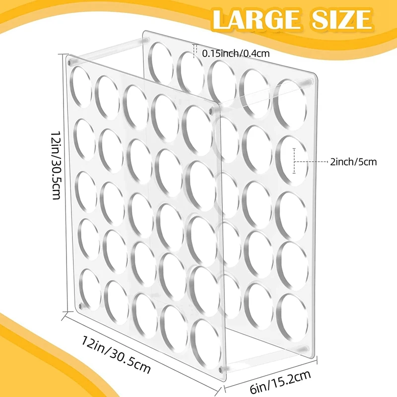 Detalles del tamaño: cada estante de almacenamiento de vinilo tiene un tamaño de 12x12 pulgadas/31x31 centímetros, con 25 agujeros, cada uno con un tamaño de 2 pulgadas/5 centímetros. Compruebe cuidadosamente el tamaño antes de comprar el producto.