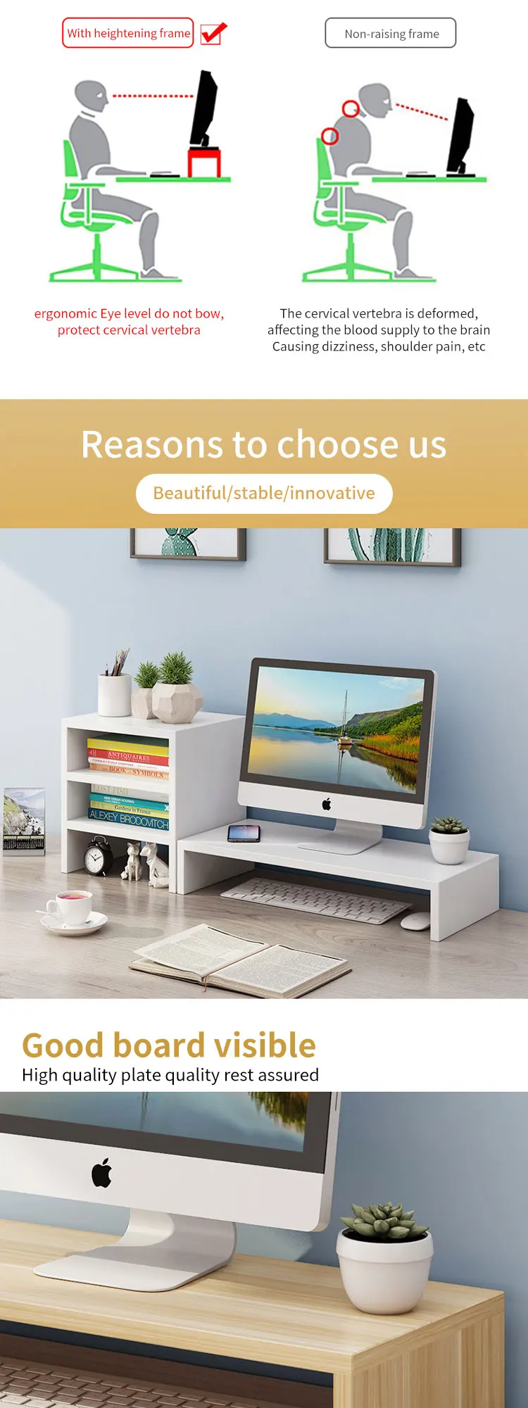 Comprar Estante elevado para ordenador de escritorio, estante de almacenamiento de escritorio de oficina, Monitor de TV, soporte de madera, caballete para portátil, organizador para el hogar