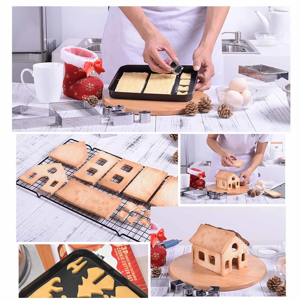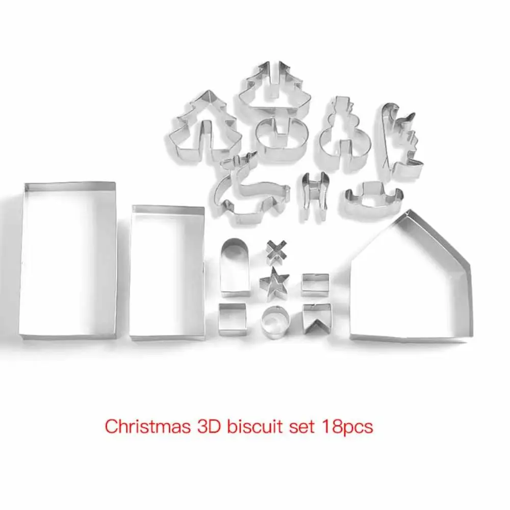 Molde para galletas tridimensional 3D de acero inoxidable modelo de galletas de 18 piezas molde para galletas casitas de pan de jengibre