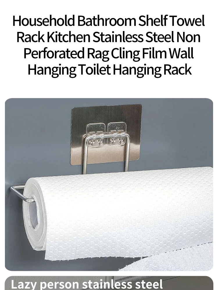 Comprar Estante de toallas para el baño para el hogar, estante de toallas para cocina de acero inoxidable, película para colgar en la pared, estante para colgar en el inodoro
