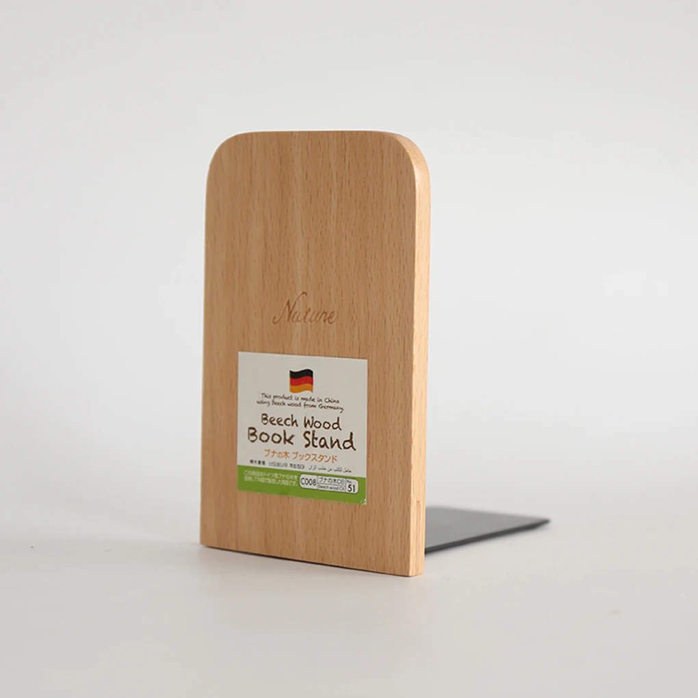 Mantenga sus libros ordenados y en posición vertical con este soporte para libros de extremos decorativos de madera beige.