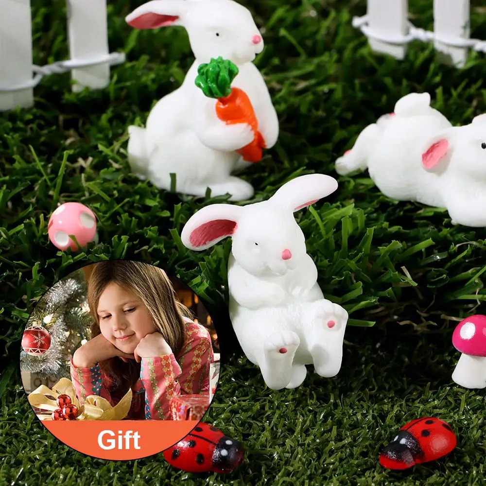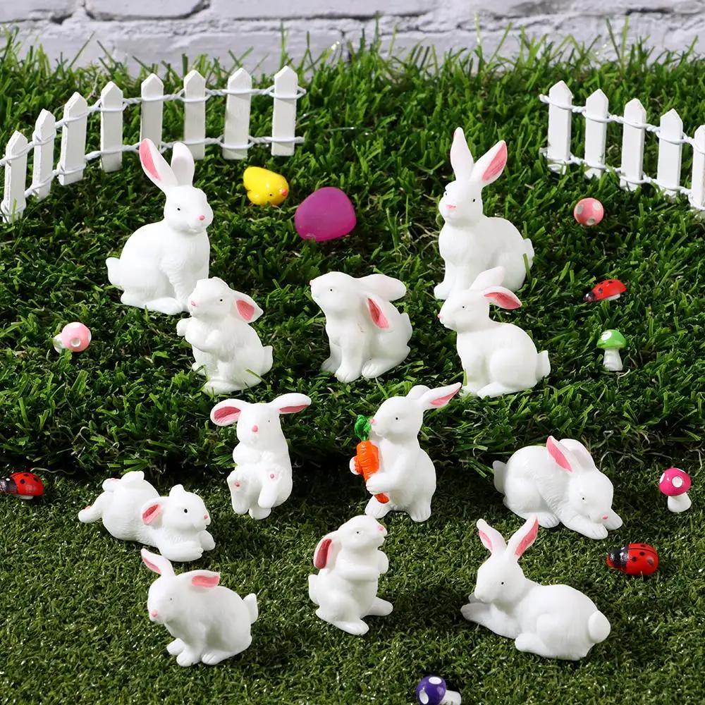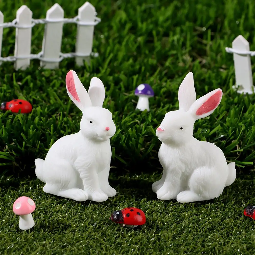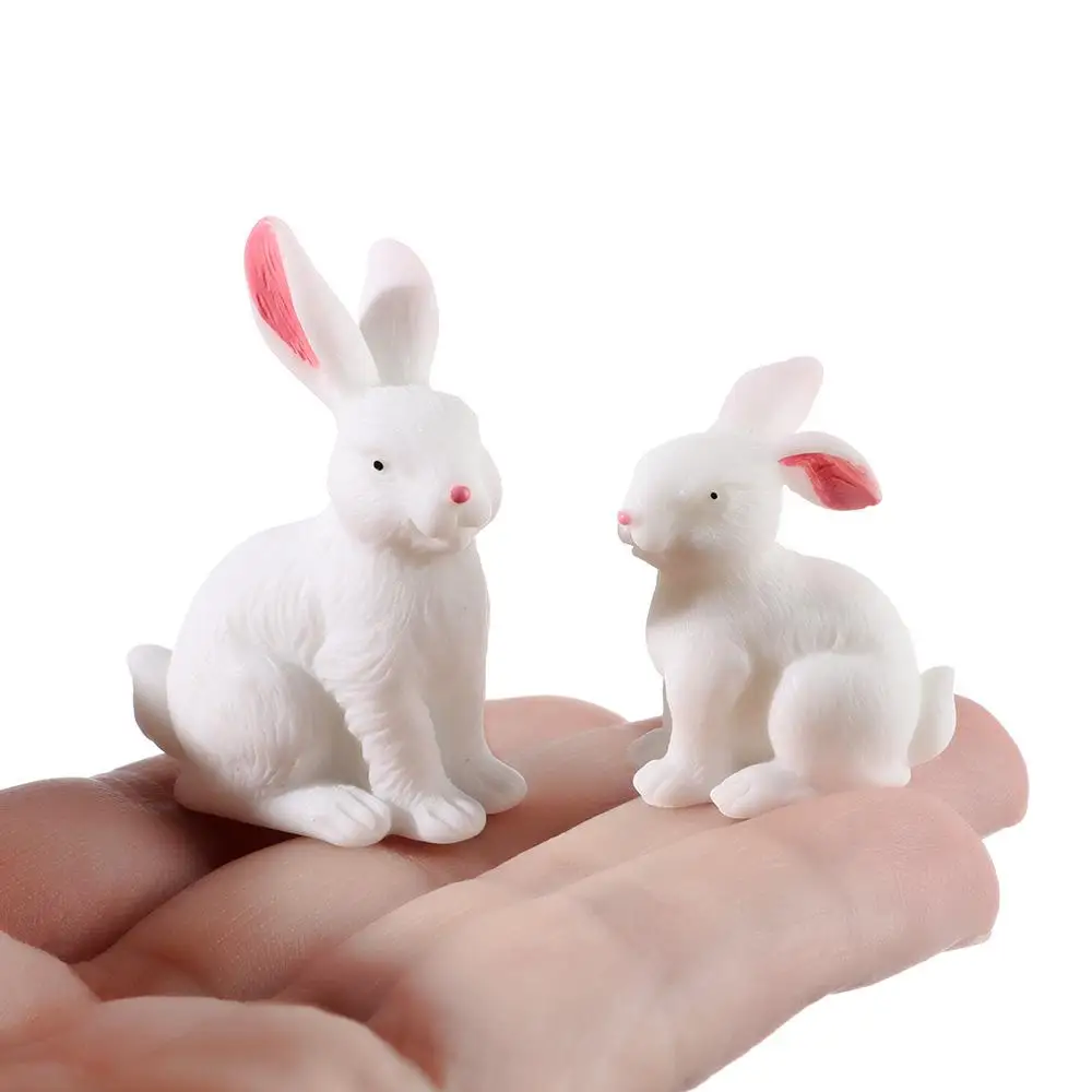 Comprar Estatuilla de conejo en miniatura, estatua de conejito de resina, jardín de hadas, Micro paisaje, adorno de casa de muñecas, liebre blanco, Mini Animal lindo