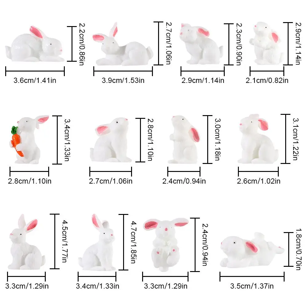 Estatuilla de conejo en miniatura Estatua de conejito de resina Jardín de hadas Micro paisaje 12 estilos 100% Nuevo y de alta calidad Material: resina Color: blanco Tamaño: 3,6*2,2 cm; 3,9*2,7 cm; 2,9*2,3 cm; 2,9*2,1 cm; 3,4*2,8 cm; 2,8*2,7 cm; 3*2,4 cm; 3,1*2,6 cm; 4,5*3,3 cm; 4,7*3,4 cm; 3,3*2,4 cm; 3,5*1,8 cm; Tema: Conejo Cantidad: 1PC Aplicar a: Jardín de hadas, micropaisaje, bonsái, regalo, bricolaje, etc. El paquete incluye: 1 * figurita de conejo en miniatura. Nota: 1. Permite una ligera desviación en la medición. 2. Debido a la diferencia de luz y pantalla, el color del artículo puede ser ligeramente diferente al de las imágenes, gracias por su comprensión.