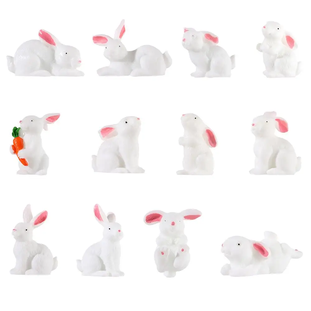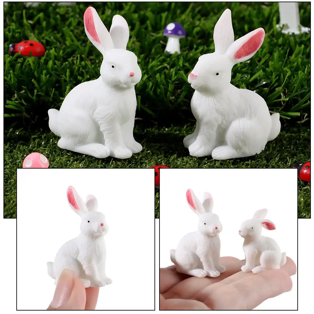 Comprar Estatuilla de conejo en miniatura, estatua de conejito de resina, jardín de hadas, Micro paisaje, adorno de casa de muñecas, liebre blanco, Mini Animal lindo