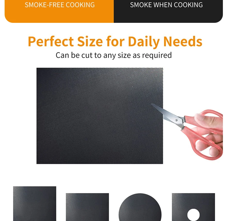 2.100% antiadherente-100% antiadherente significa que puede asar sin grasa y las esteras son reutilizables durante años La estera antiadherente de la parrilla del Bbq evita que incluso los más pequeños bocados caigan a través de las rejillas. Mantenga su parrilla con un aspecto nuevo y no más limpieza de su parrilla sucia