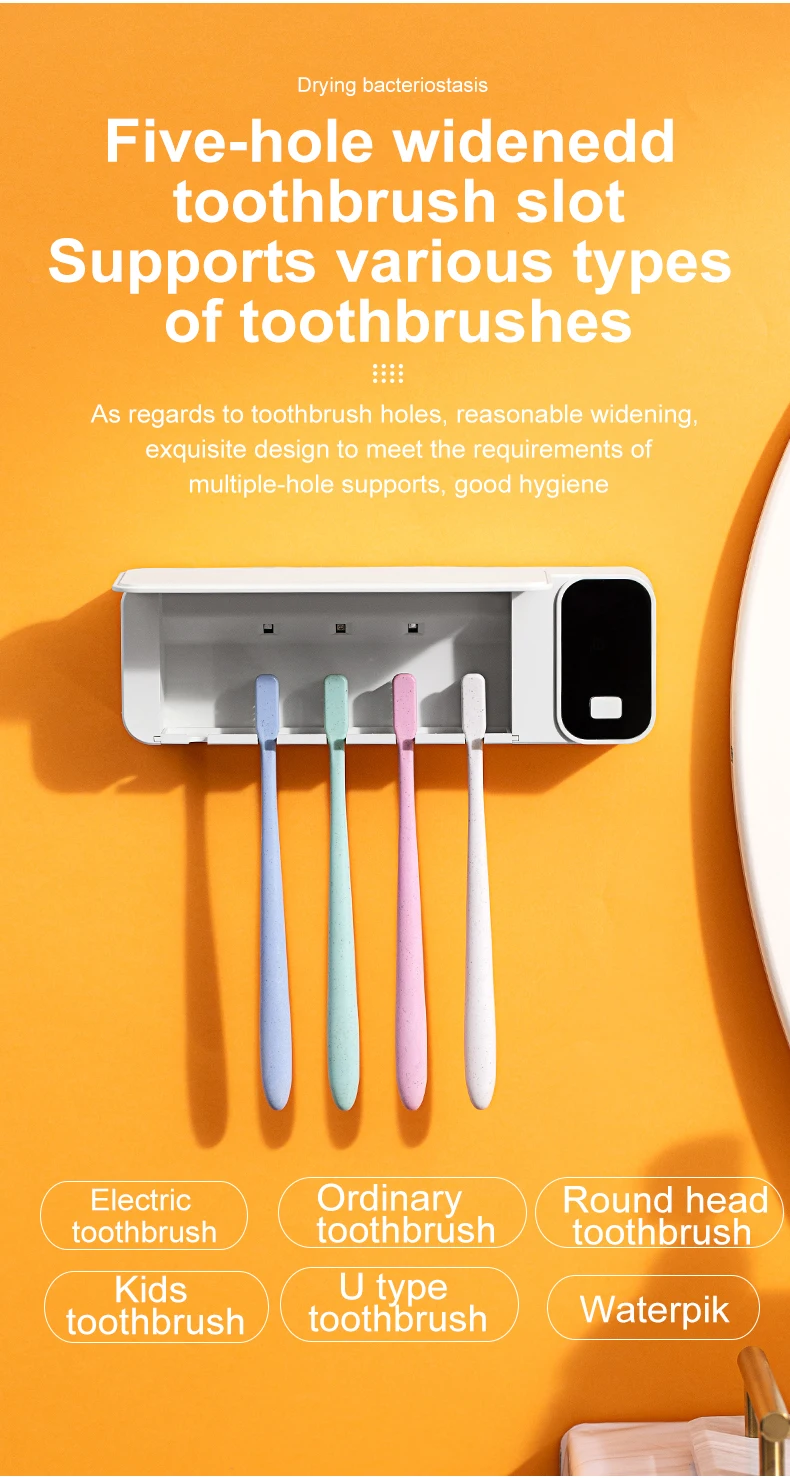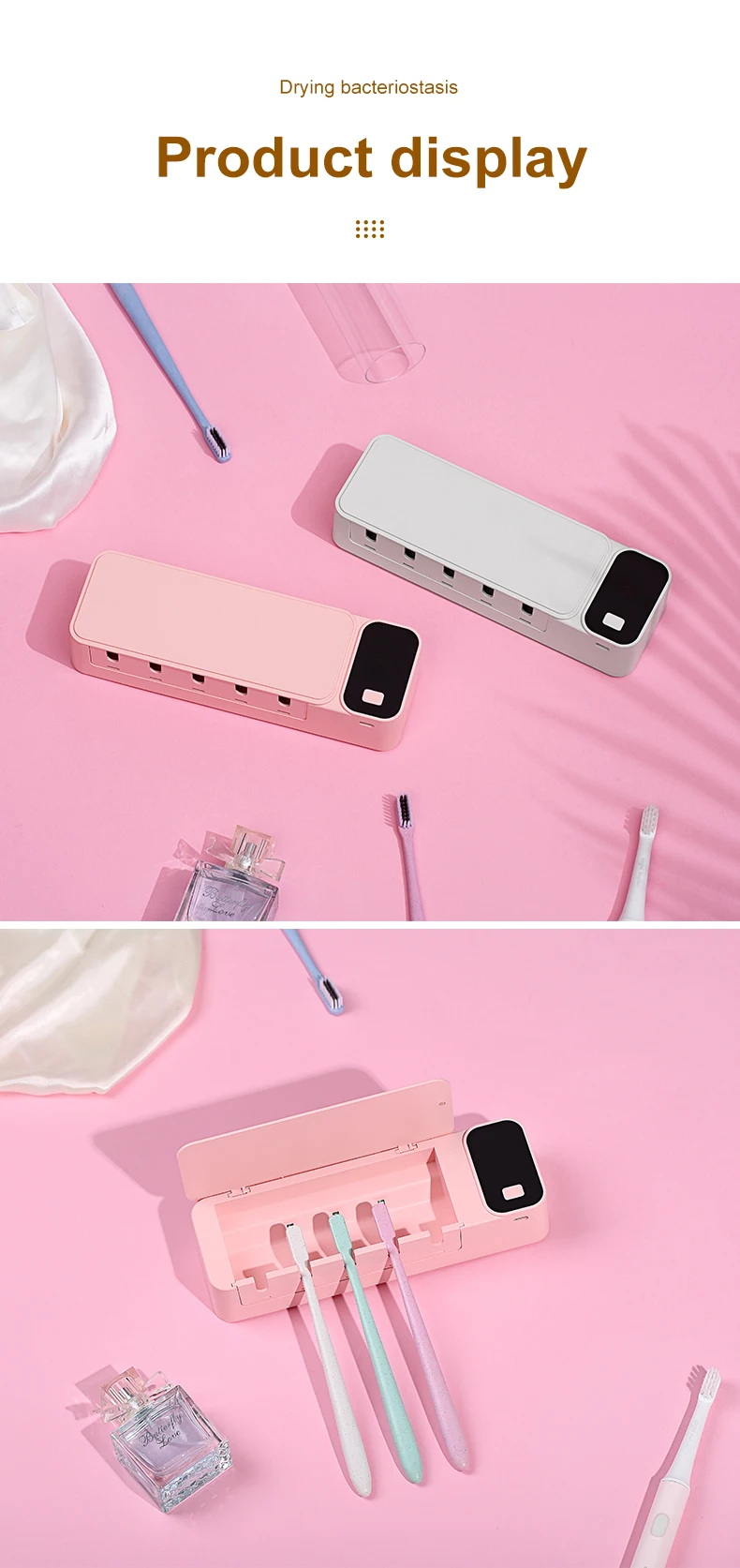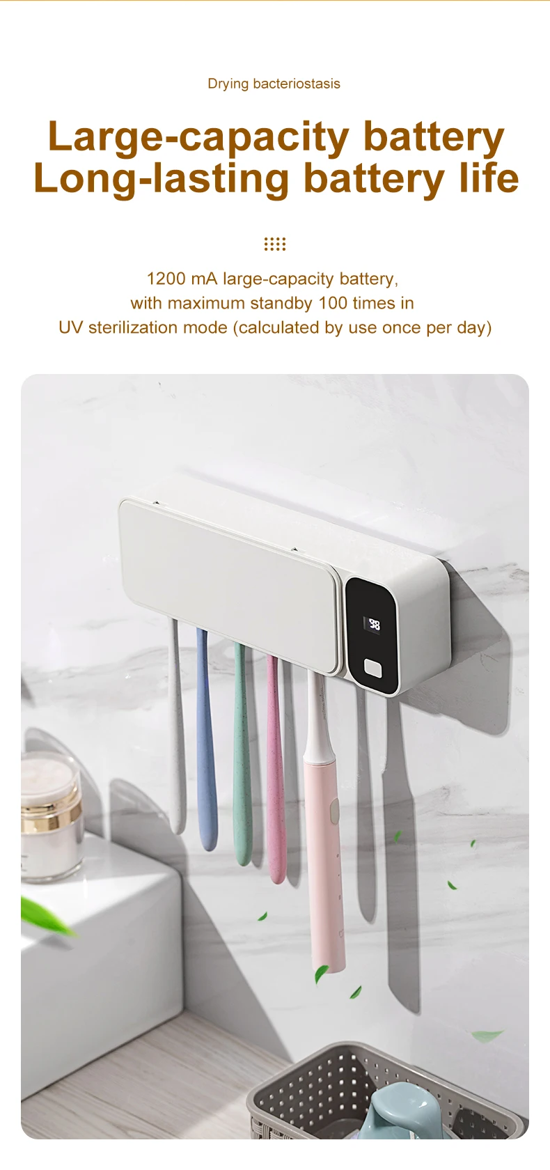 Comprar Esterilizador de cepillo de dientes UV recargable, soporte de cepillo de dientes montado en la pared de secado rápido con pantalla LED para Baño
