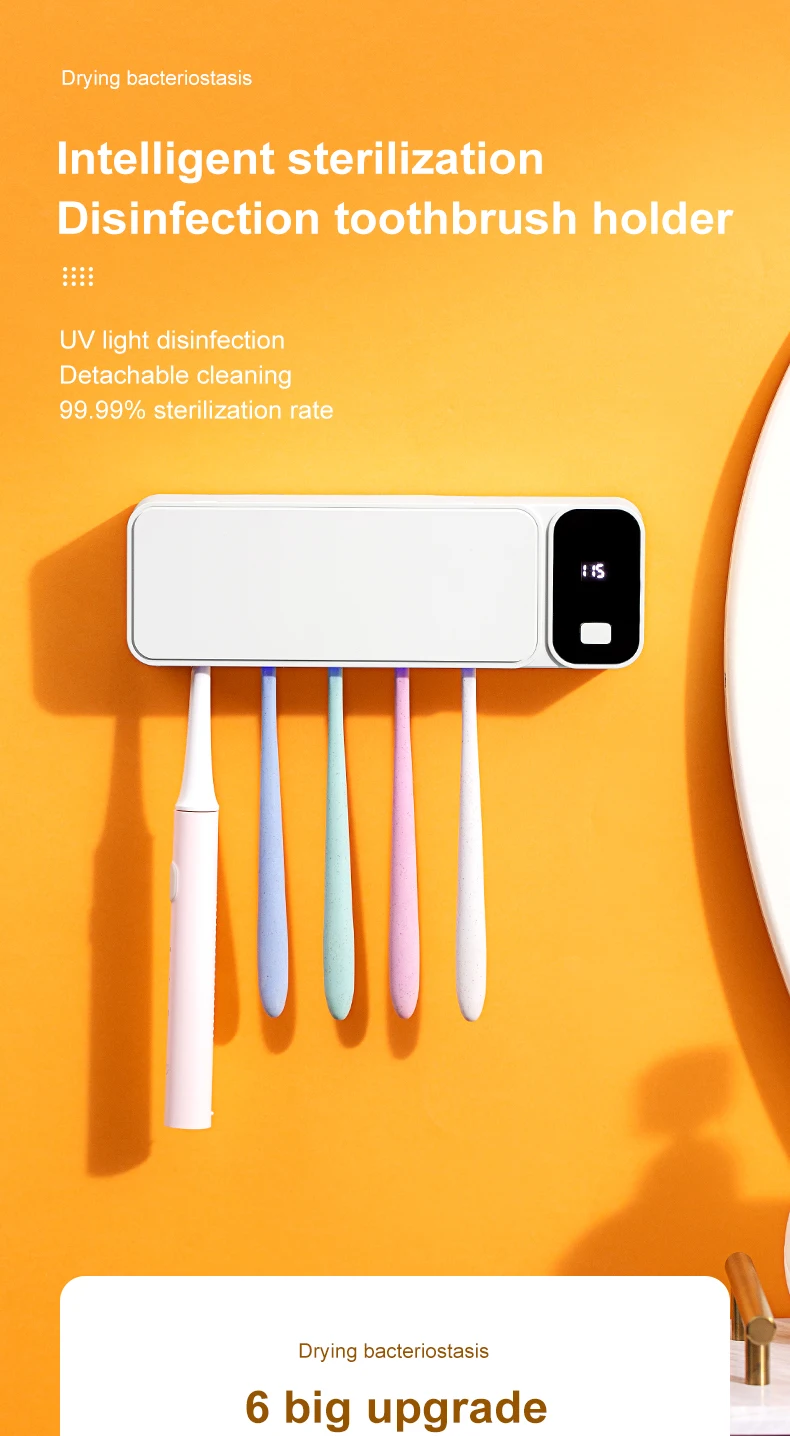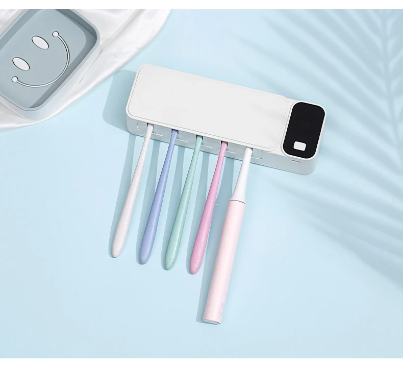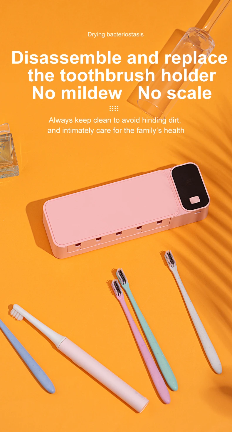 Comprar Esterilizador de cepillo de dientes UV recargable, soporte de cepillo de dientes montado en la pared de secado rápido con pantalla LED para Baño