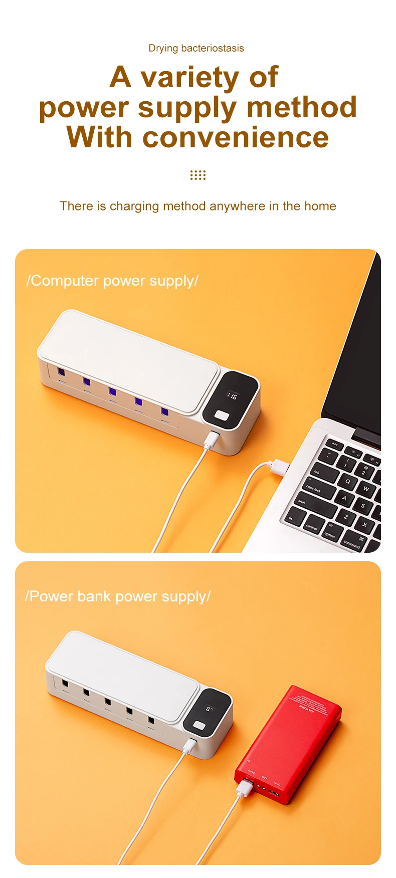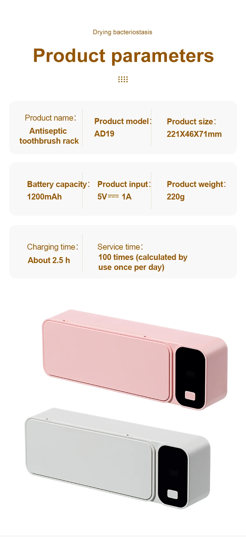 • Función recargable :Con su función recargable, este esterilizador de cepillo de dientes no solo es ecológico sino también conveniente. No hay necesidad de cepillos desechables o piezas de repuesto costosas.