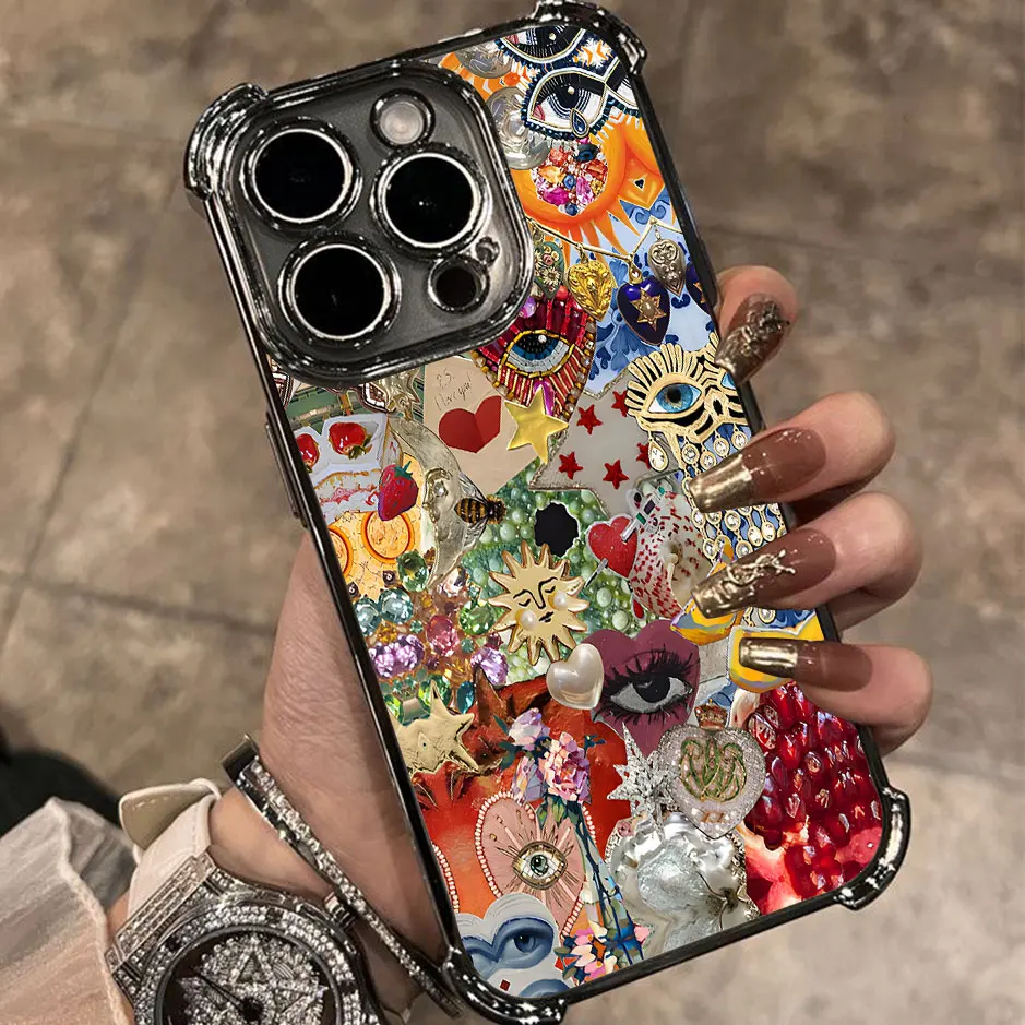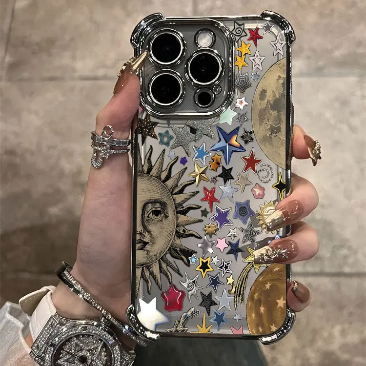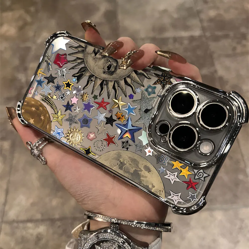 Estilo Retro cara sol estrellas Ins caja de teléfono chapado para Infinix Hot 40i 30 30i 10s Play Smart 9 8 7 Note 40 Spark Anti caída Airbag