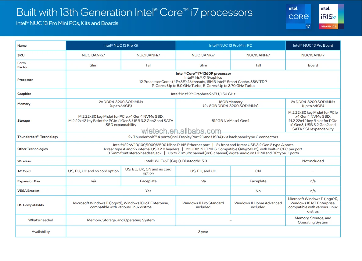 Comprar ¡Estoque listo! Intel NUC 13 Pro NUC13ANHi7 Original Intel nuc 13th Core i7-1360P Arena Can-yon Intel nuc 13 pro i7 mini pc para juegos