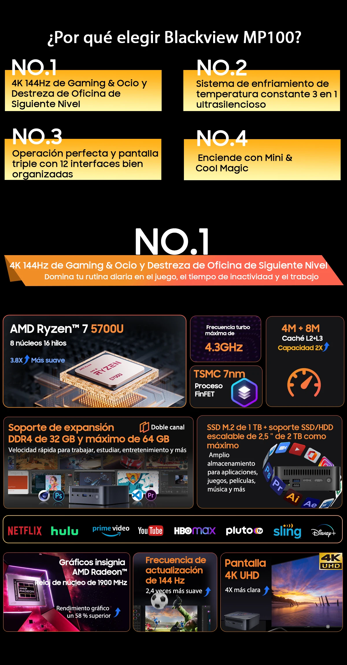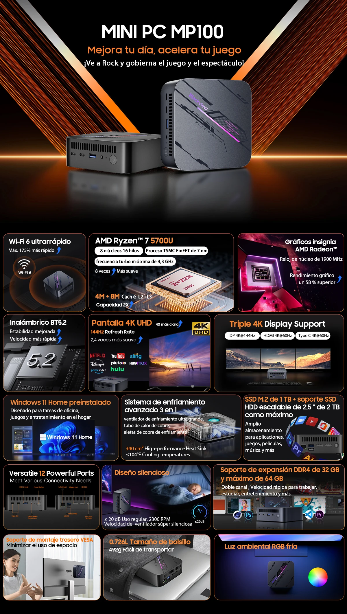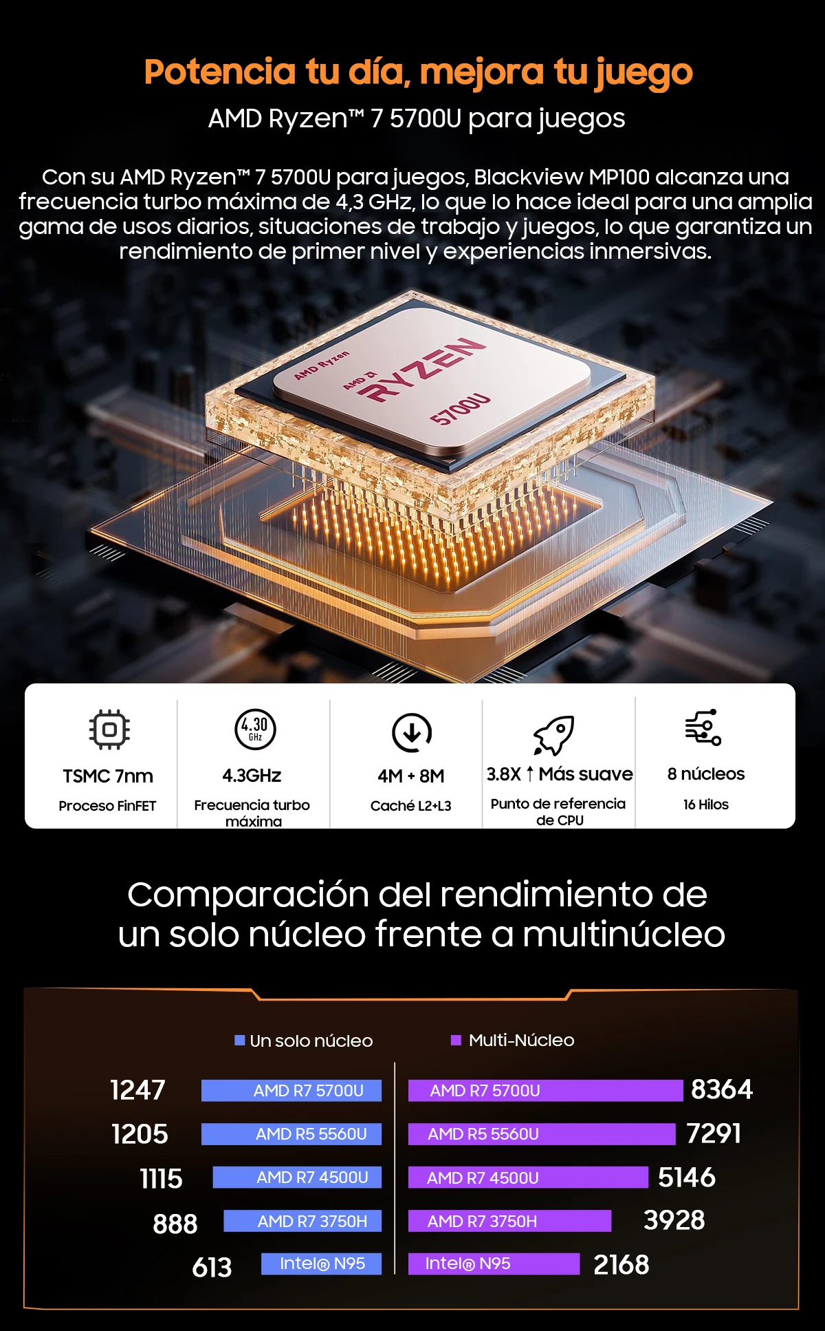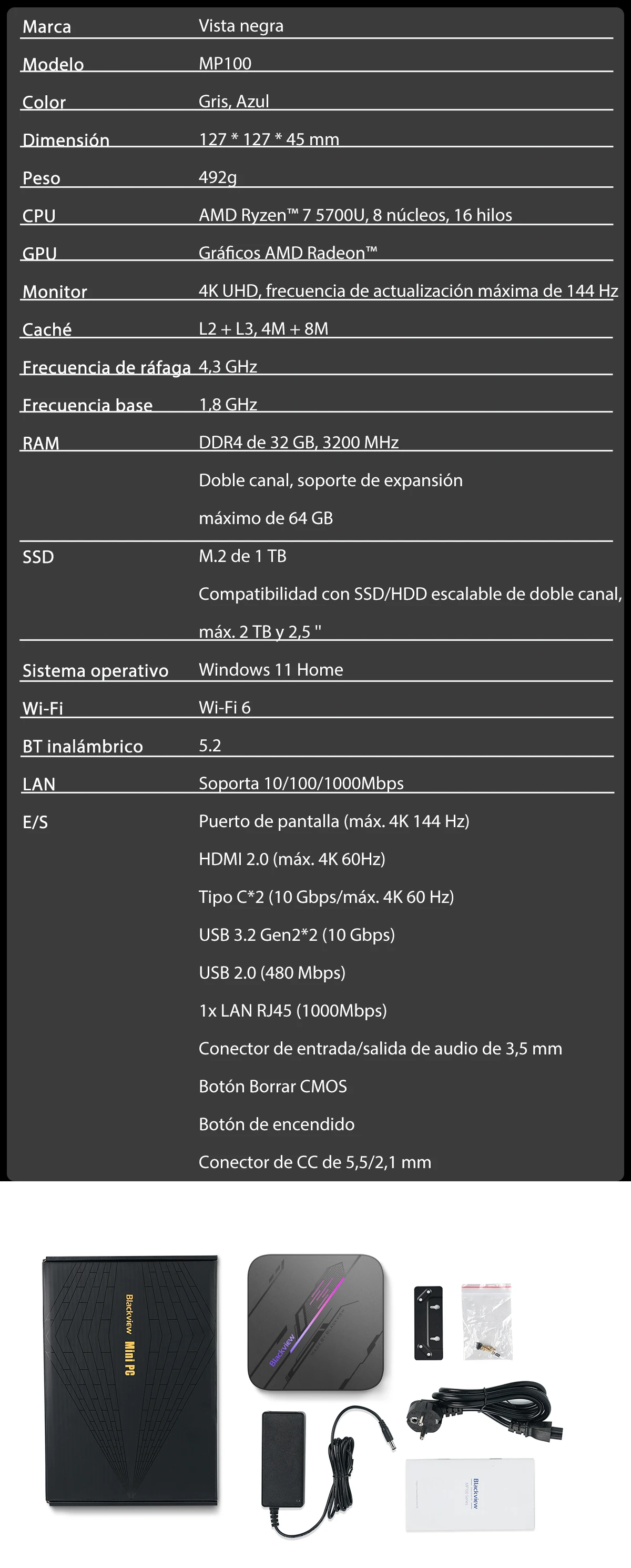 Comprar [Estreno mundial] Blackview Mini PC MP100 AMD R7 5700U Mini PC 8 núcleos 16 hilos 16GB /32GB DDR4 512GB/1TB SSD Mini ordenador PC