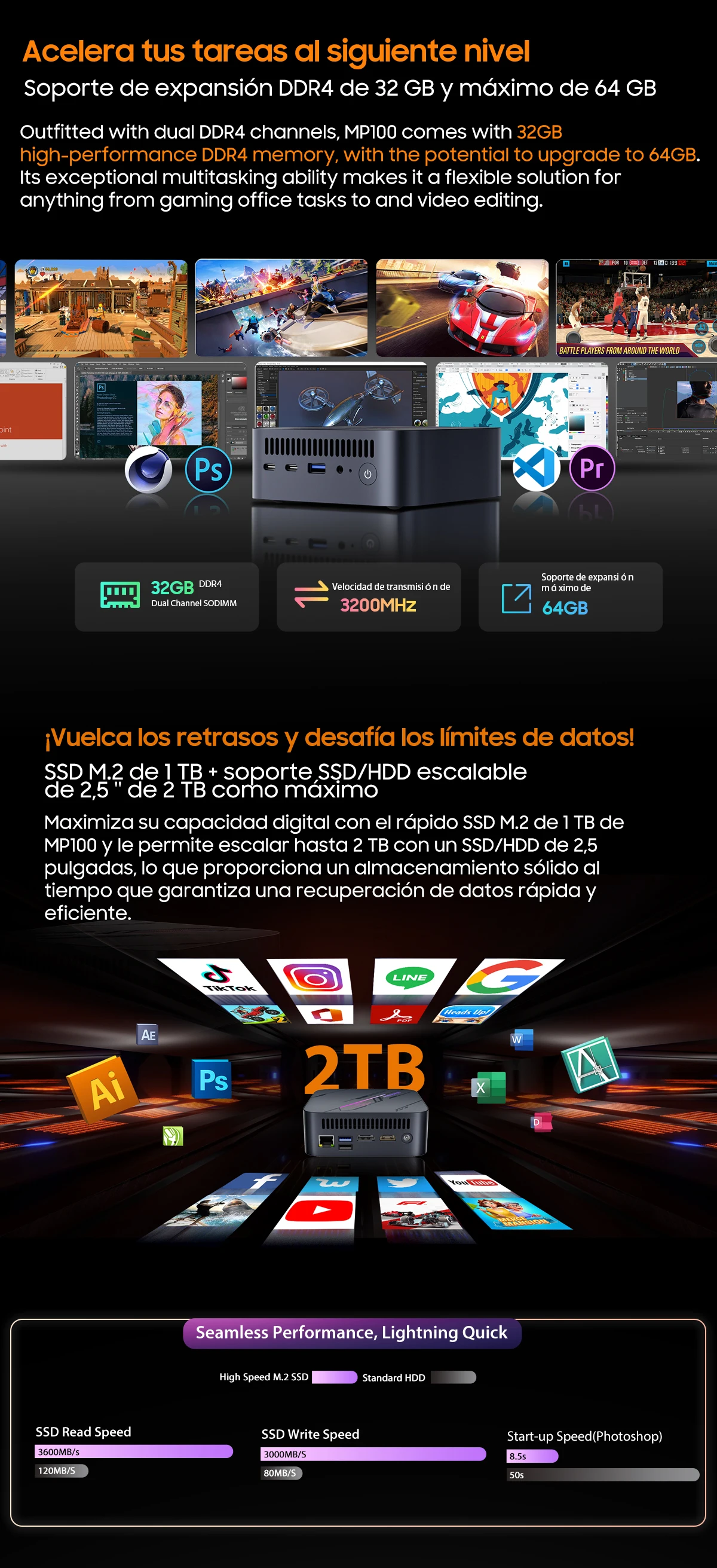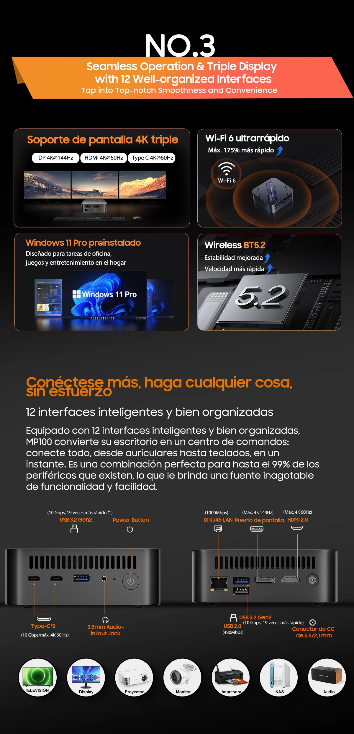 -Soporte: 1 * HD, 2 * USB 3.2, 1 * USB 2.0