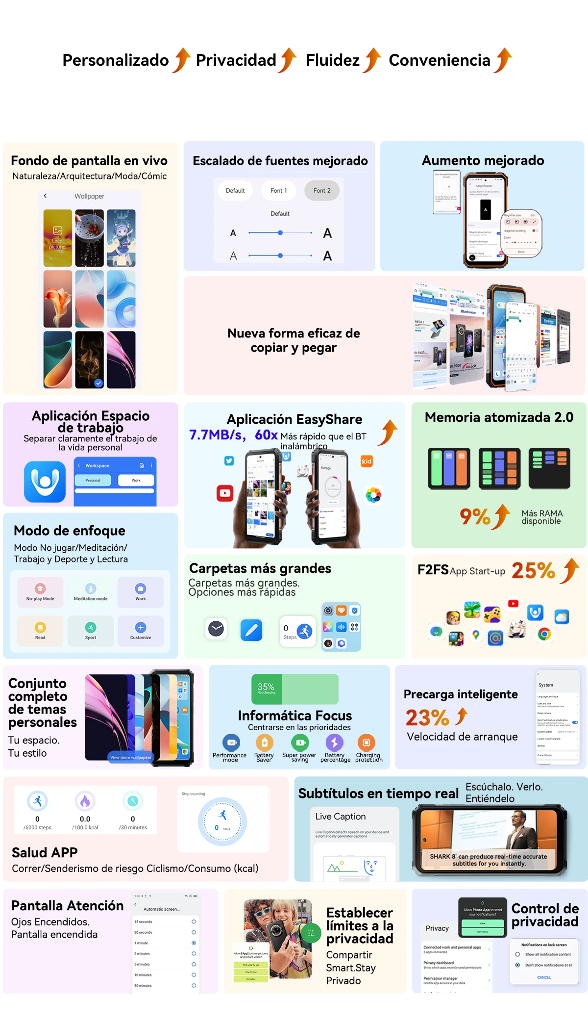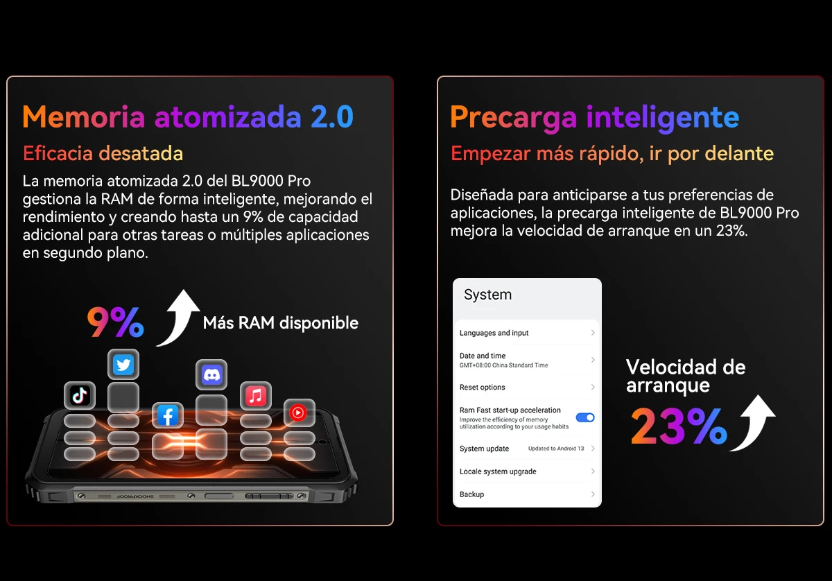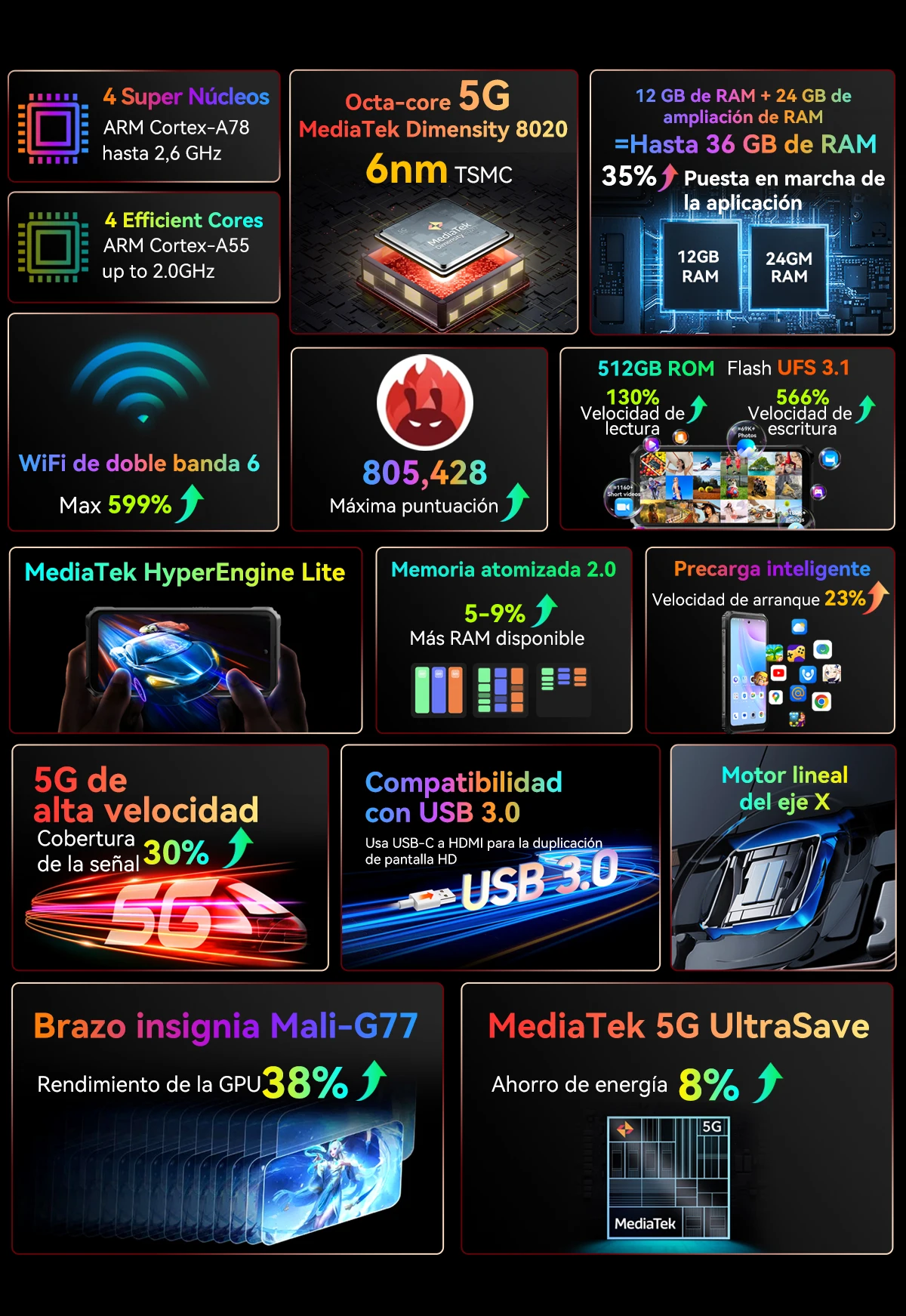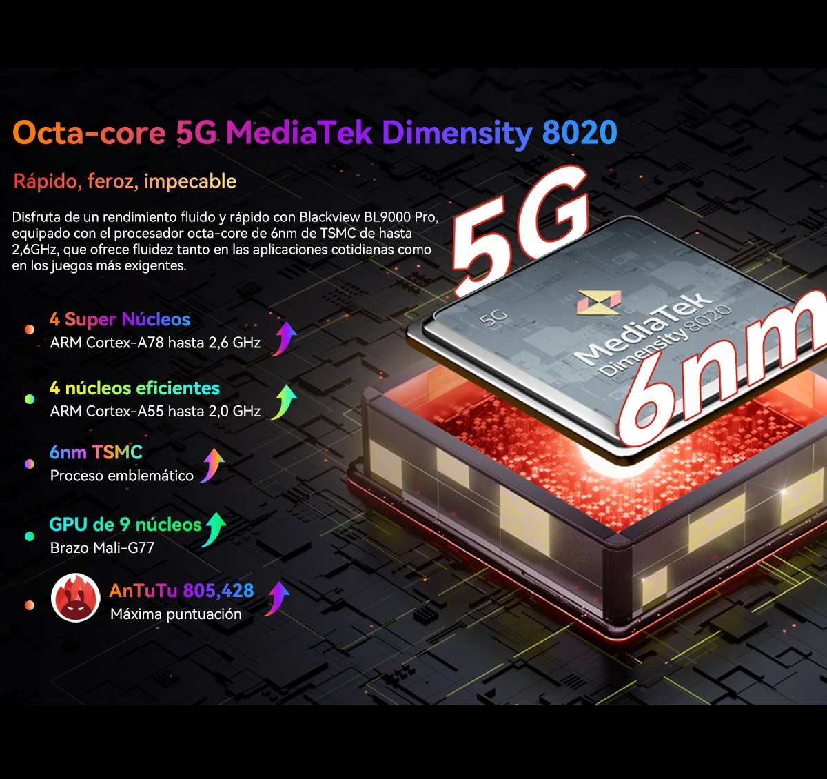 CPU:MediaTek Dimensity 8020 (6nm), Octa-core, hasta 2,6 GHz